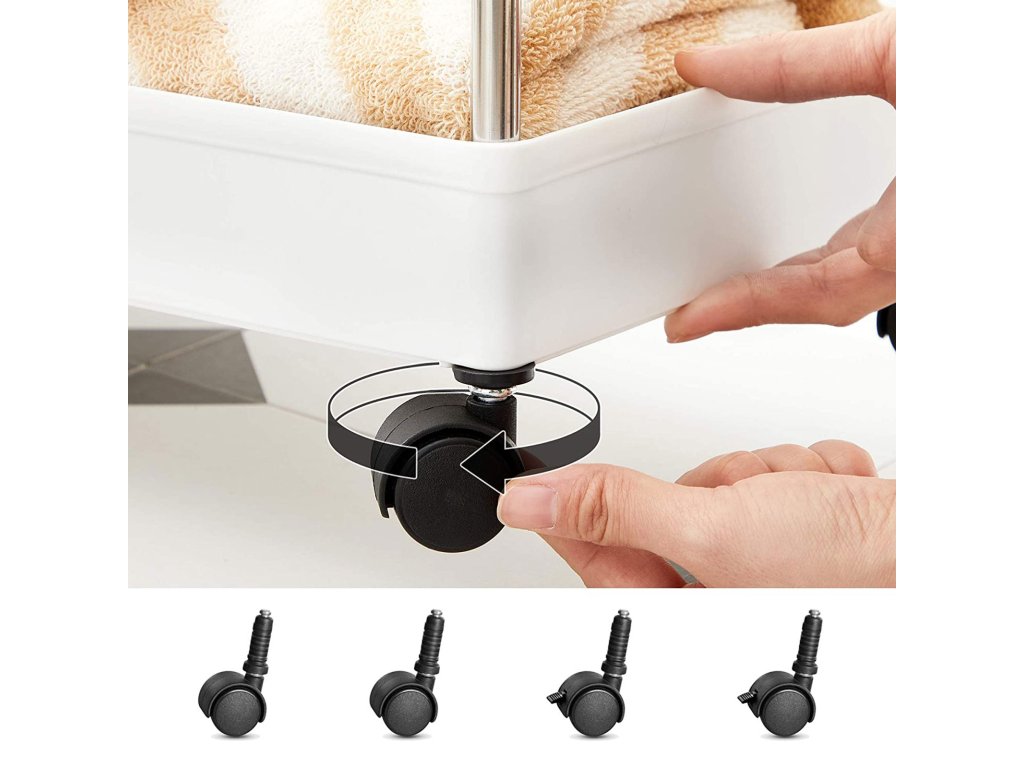 Žádný zbytečný prostor: Pokud se vám po pultu plazí tuny lahví a sklenic, proč je neukládat do tohoto štíhlého vozíku o rozměrech 40 x 13,5 x 93 cm a nezasunout ho do úzké mezery, do rohu stěny? nebo místo vedle mrazáku? Najednou je příprava jídla mnohem rychlejšíTady nebo tam? Tento úložný vozík je na kolečkách, kamkoli se posune. Díky 4 kolečkům jej můžete hladce přesunout do koupelny, obývacího pokoje nebo prádelny a okamžitě jej uskladnit, 2 brzdy jej udrží v klidu.