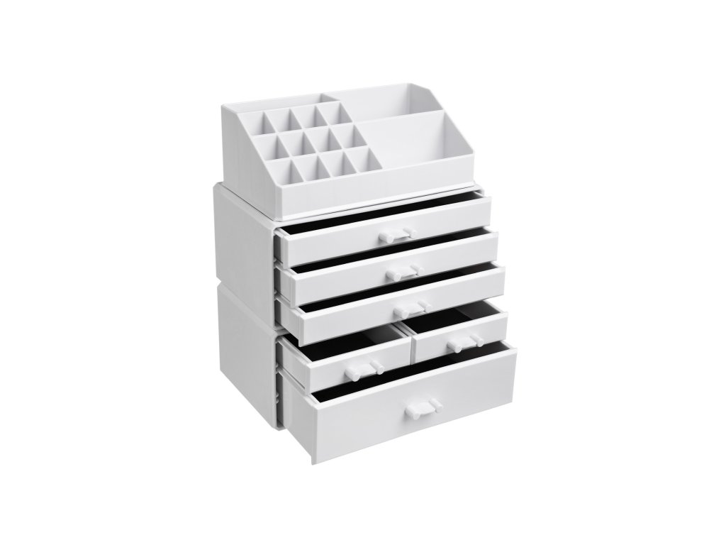 Velký akrylový organizér na kosmetiku, stohovatelný kosmetický box se 6 zásuvkami, na paletu, štětce, nadaci, rtěnku, lak na nehty, sponky do vlasů, skvělý dárek pro blízké, bílý.