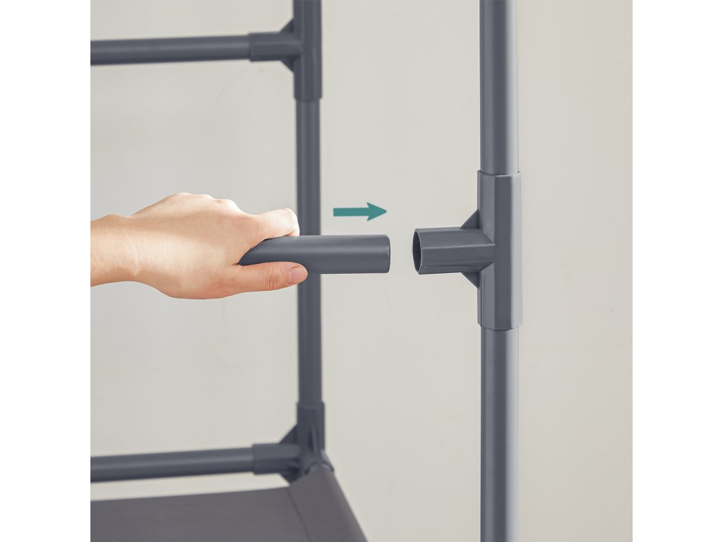 V dobrých rukou: Už vás nebaví, že vám oblečení z chatrného věšáku padá na zem? Tentokrát ne! Díky 25 mm průměru. kovových trubek, netkané textilie o gramáži 110 g/m² a nosnosti 55 kg je tento dvojitý kolejnicový regál silný, aby udržel téměř jakékoliv oblečení, které mu hodíte do cesty.Pro snadnější život: Po návratu domů po náročném pracovním dni nechcete strávit příliš mnoho času sestavováním tohoto stojanu na oblečení. Nepotřebujete žádné nářadí, a tak jej bez větší námahy nastavíte během chvilky.Prostor pro všechny: Košile a halenky jsou na jedné kolejnici, šaty a kalhoty na druhé, boty na spodní polici; Co ještě? Dvě tyče po obou stranách nabízejí ideální místo pro šátky a tašky - vše je zde pro dokonalý ranní outfit;Kde ji budete potřebovat: V ložnici nebo v šatně si můžete vybrat perfektní oblečení, pověsit kabáty na chodbě nebo vysušit mokré oblečení na balkoně; tento dvoupatrový věšák na kabáty váží 2,8 kg, takže se snadno pohybuje po domě;Co získáte: Věšák SONGMICS se dvěma kolejnicemi pro uspořádanou domácnost; podrobný návod a očíslované díly, které vám ušetří čas při montáži.| Kategorie: | Stojany na oblečení |