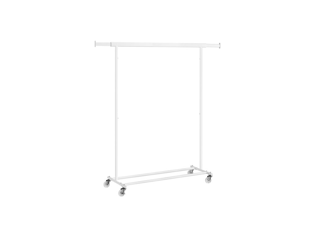 Věšák na oděvy na kolečkách, těžký věšák na oděvy, s výsuvnou závěsnou lištou, nosnost 90 kg, snadná montáž, přenosný, klasický bílý.