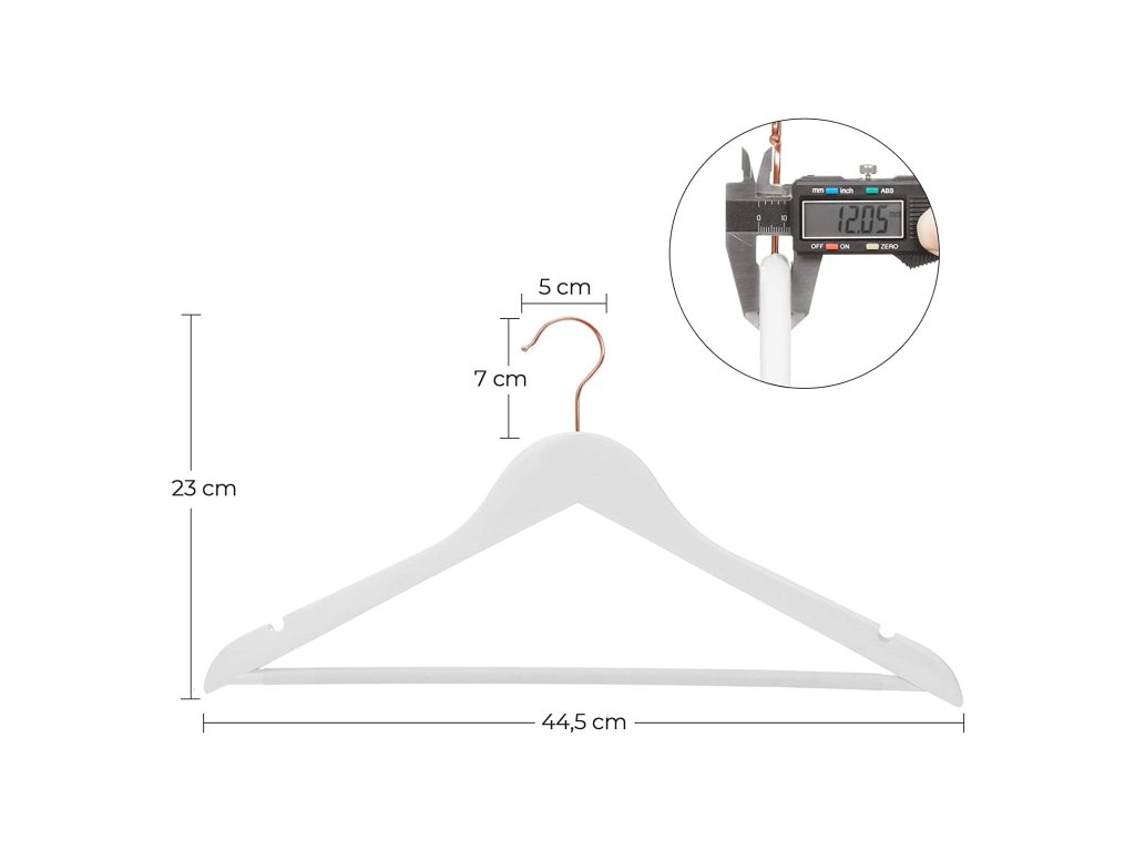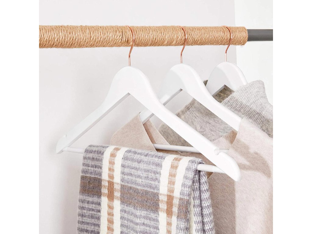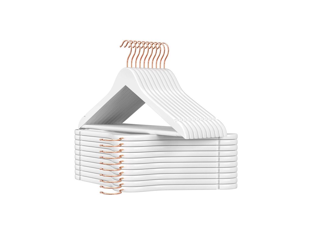 Pastva pro oči: Tato okouzlující ramínka na obleky z masivního dřeva s bílou povrchovou úpravou jsou skutečně vyrobena bez jakýchkoli kompromisů a udrží krásný tvar vašeho oblečení. nechat je vypadat svěže, jako by právě vyšly z obchodu.Born to Be Strong: Dobré materiály mluví samy za sebe; Tato ramínka jsou vyrobena z ručně leštěného javorového dřeva, mají pevnost, která unese 5 kg těžké bundy nebo zimní kabáty, a budou se ve vaší skříni vyjímat dlouhá léta;Sbohem, hrboly: Konečně se můžete rozloučit s trapnými hrbolky na ramenou na tričkách; s podobným zakřivením jako lidská ramena se tato ramínka dobře postarají o vaše oblečení a udrží váš vzhled;Otáčí se o 360°: Může se hák otáčet? Ano! Otáčí se o 360° , takže můžete snadno otáčet oblečení, aniž byste je museli sundávat z ramínka. Mít oblečení otočené správným směrem je teď jednodušší.Dodejte svému šatníku jiskru: Nebuďte monotónní! Tato elegantní ramínka na šaty s lesklými háčky z růžového zlata jsou připravena proměnit organizaci vašeho šatníku v módní, třpytivou hostinu.| Kategorie: | Šatní ramínka |