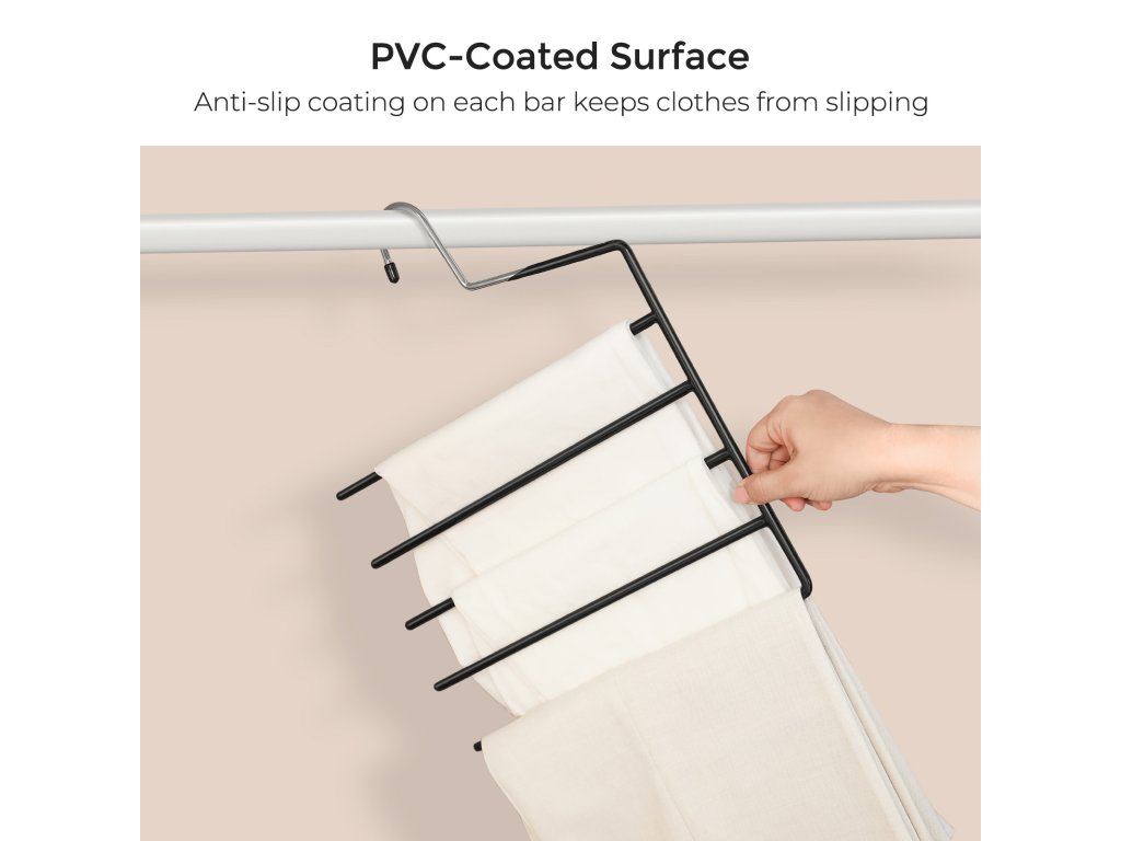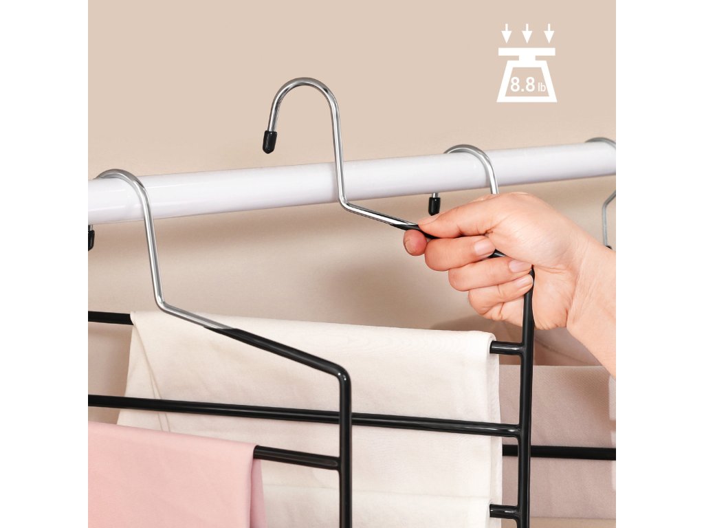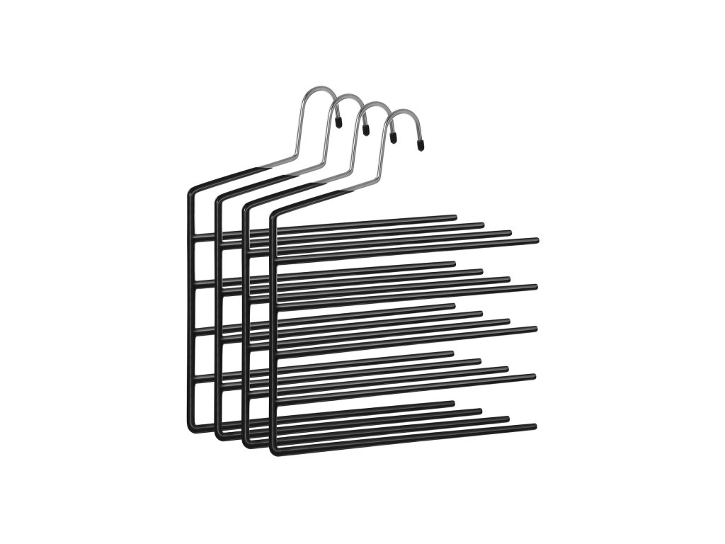 Věšáky na kalhoty, sada 4 věšáků s 5 tyčemi, šetřící místo, s otevřenými konci, protiskluzové organizéry na kalhoty, na džíny, ručníky, šátky, černé.