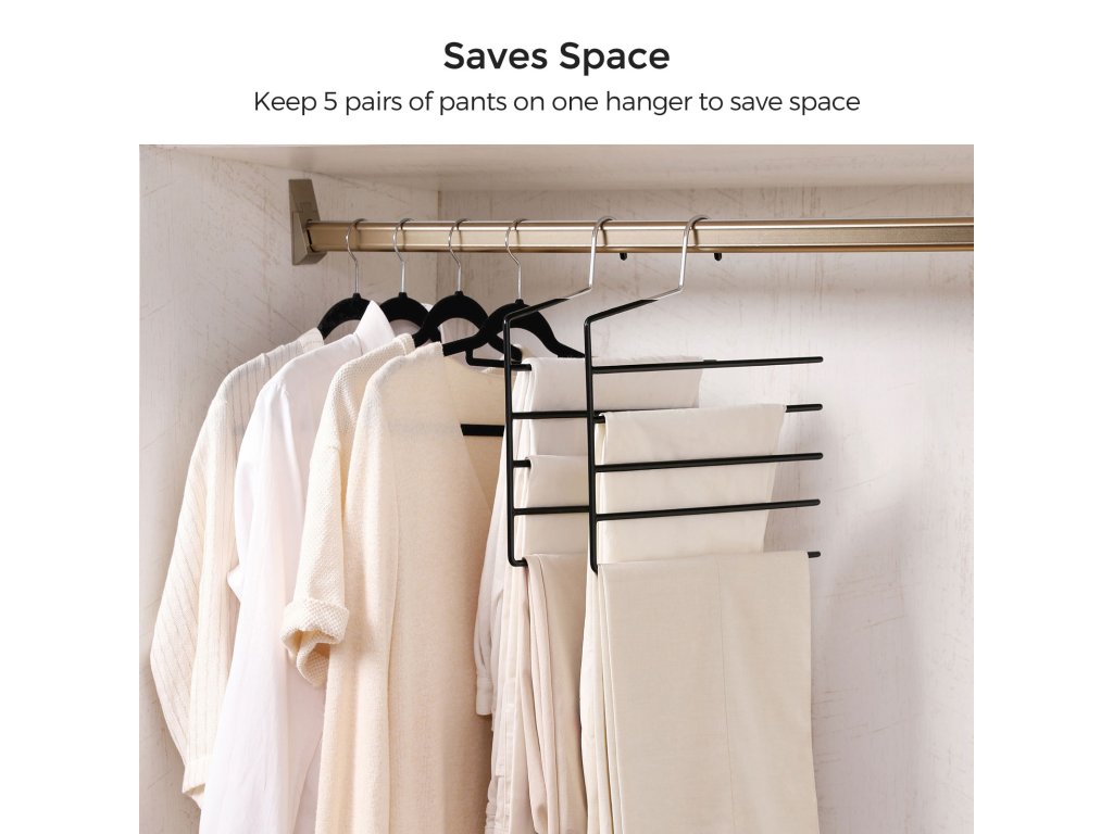 Zůstaňte v řadě: Kalhoty jsou schované mezi shluky oblečení a šátky a ručníky se často ztrácejí v nepořádku. Získejte převahu nad chaosem díky této sadě 4 věšáků s více tyčemi, které udrží pořádek na jednom místě.1 rovná se 5: Pokud nejste obdařeni velkou šatní skříní, mějte kalhoty na 5 tyčích jednoho ramínka a ušetřete 80 % místa, čímž se vaše šatní skříň stane prostornou.Uklouznutí? Bez šance: Zdá se, že jemné kalhoty jsou předurčeny k tomu, aby skončily na podlaze vaší skříně. způsobuje tu obávanou hromadu? Povlak z PVC na každé tyči vám pomůže zabránit tomuto nepříjemnému neštěstí a následným vráskám.Váš kompetentní pomocník: Nebojte se je pověsit, tato odolná ramínka to zvládnou.Co obdržíte: Balení 4 závěsů každá s 5 prostorově úspornými tyčemi, které "zvětší" váš šatník a udrží vaše kalhoty nebo doplňky upravené přímo před vašima očima, kdykoli si je budete chtít vzít na sebe.| Kategorie: | Šatní ramínka |