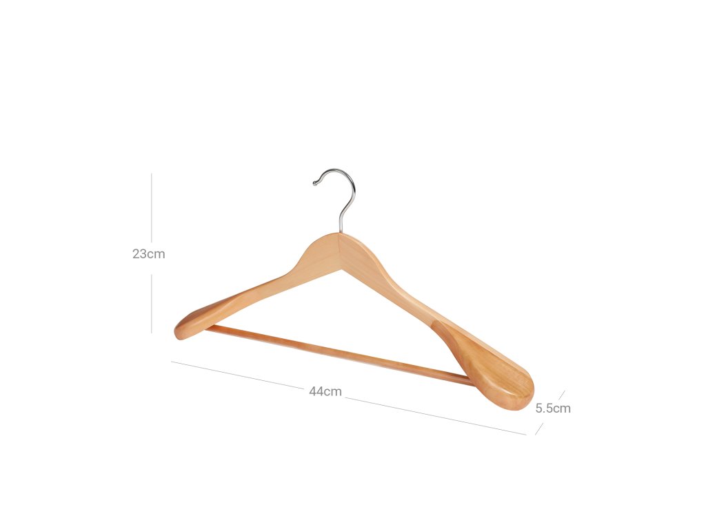 PAST PRO VAŠE OČI: Skutečně vyrobeno bez jakýchkoli kompromisů v dohledu tato okouzlující ramínka na obleky s teplým přírodním leskem a hladkým masivním dřevem udrží krásný vzhled vašich nejdůležitějších oděvů, připravených na ranní pohovor nebo obchodní schůzku.Špičková opora: Plně tvarovaná a hluboce skloněná široká ramena poskytují jedinečnou oporu a zachovávají přirozený tvar oděvů ve váš prospěch, jak to zamýšlel krejčí.SE NARODIL, ABY BYL SILNÝ: Dobré materiály mluví samy za sebe; Každý věšák je vyroben z ručně leštěného dřeva prvotřídní kvality, má sílu udržet až 5 kg obleků, košil, kalhot nebo zimních kabátů a bude ve vaší skříni zářit po dlouhá léta;UŽ ŽÁDNÉ VYPÍNÁNÍ: Spodní tyč je opatřena drážkovanou protiskluzovou trubkou z PVC a zabraňuje tomu, aby se kalhoty zmačkaly a skončily na podlaze; šrouby zpevňují tyč, aby bylo možné zavěsit i ty nejtěžší džíny.| Kategorie: | Šatní ramínka |