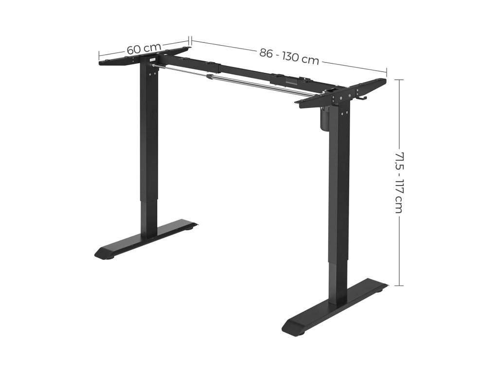 Výškově nastavitelný elektrický stůl, (86-130)×60×(71.5-117)cm, černý Stojící stůl