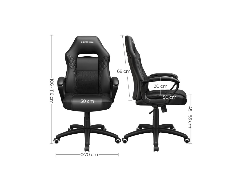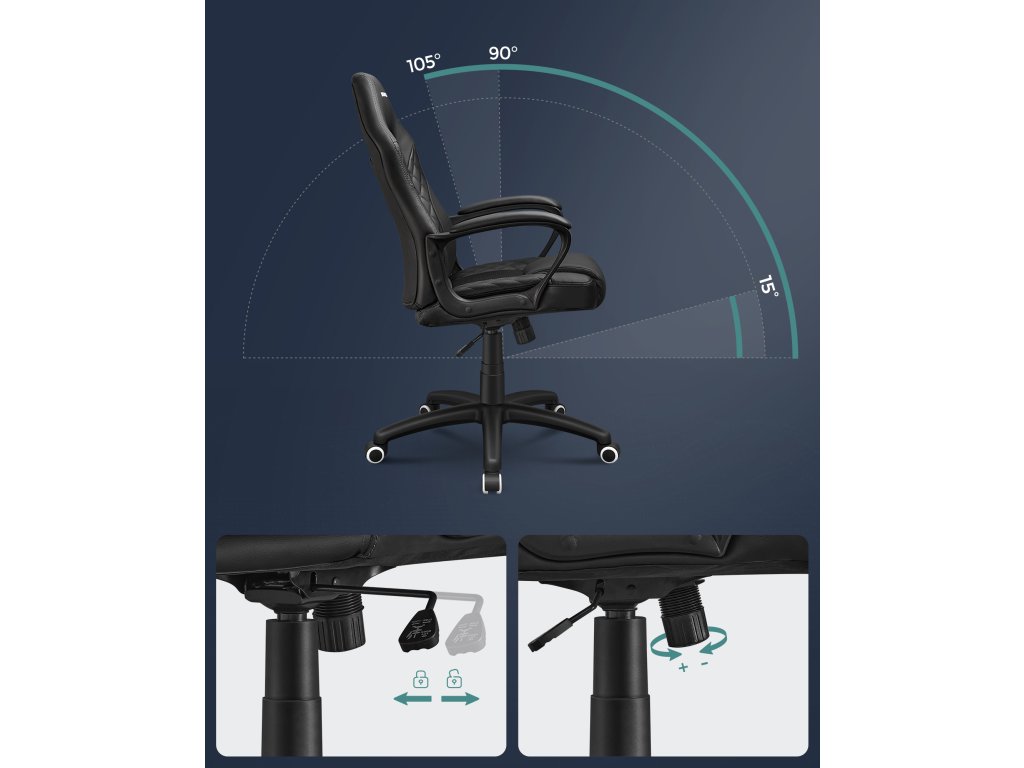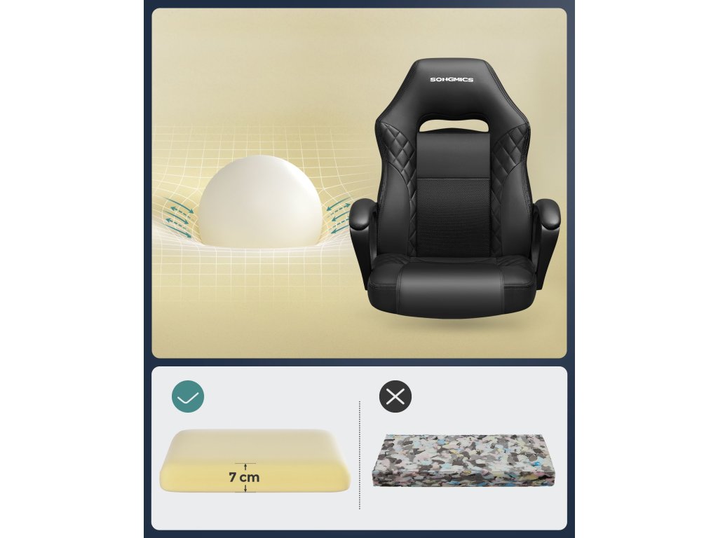 AH! ZKUŠENOST: Usaďte se na tuto kancelářskou židli s pěnovým polstrováním a ucítíte chladivou koženku na kůži. Pohodlný sedák této stylové herní židle doplňují některé prvky z prodyšné síťoviny.VŠECHNO NEJLEPŠÍ PRO VAŠE ZÁDA: Opěradlo této počítačové židle je navrženo ve tvaru písmene S, abyste si podpořili zejména bederní páteř a krk.MŮŽETE SE NA NĚ SPOLEHNOUT: Stabilní hvězdicová základna, hladce se pohybující kolečka a plynová láhev testovaná TÜV tvoří kvalitní základ této robustní manažerské židle. K tomu se přidávají pohodlné prémiové područky z nylonu.VOLNÁ, CHLUPATÁ KONSTRUKCE: Zatímco dosažení poslední úrovně počítačové hry může trvat dlouho, sestavení této židle je alespoň snadné a nadýchané. Stačí utáhnout 12 šroubů. Po 10-15 minutách již můžete židli používat.CO ZÍSKÁTE: Ergonomická nastavitelná herní židle od společnosti SONGMICS, kterou lze používat doma nebo v kanceláři. Ať už hrajete nebo pracujete, tato židle vždy zajistí maximální pohodlí při sezení.| Kategorie: | Kancelářské židle |