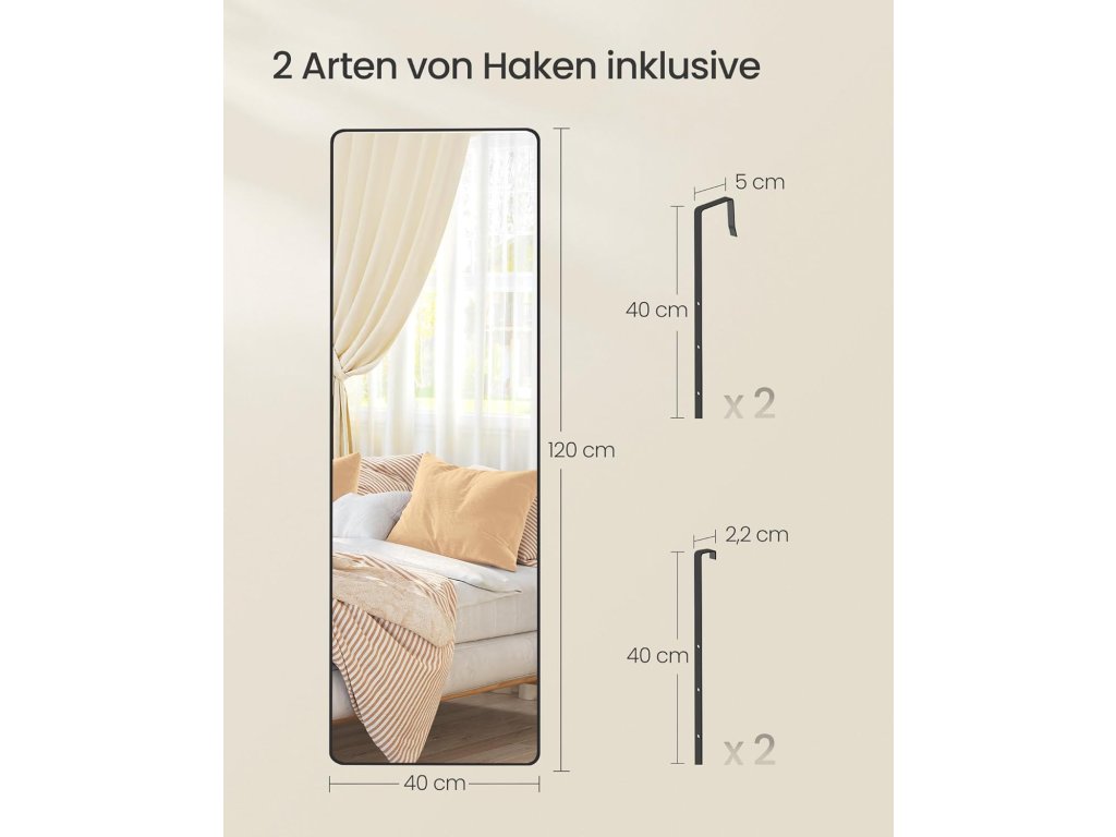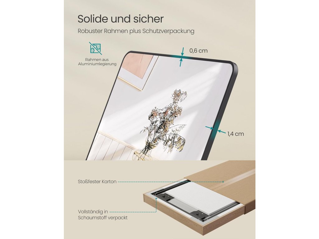 Plný výhled, všestranný: toto zrcadlo o rozměrech 120 x 40 cm vám poskytne kompletní přehled o vašem oblečení. Ať už je zavěšeno na stěně nebo na dveřích, užijte si dokonalý zrcadlový obraz.Robustní a ochranné: dveřní zrcátko z vysoce kvalitního tvrzeného skla s bezpečnostní fólií je odolné a chrání vás před střepy i v případě nečekaného rozbití.Všestranný půvab: toto zrcadlo má elegantní obdélníkový rám a dodá vašemu pokoji šarm. Je také ozdobou, která zvýrazní styl vaší ložnice, vstupního prostoru, obývacího pokoje a tělocvičny.Rám z hliníkové slitiny: robustní rám je odolný proti korozi a zachovává si lesklý povrch. Navíc je dostatečně odolný, aby zabránil praskání a umožnil dlouhodobé používání.Připraveno k použití: toto nástěnné zrcadlo je po vybalení připraveno k použití a nevyžaduje žádnou montáž. Díky lehkému rámu jej lze bez námahy přemístit a umístit kamkoli ve vaší domácnosti.| Kategorie: | Zrcadla |