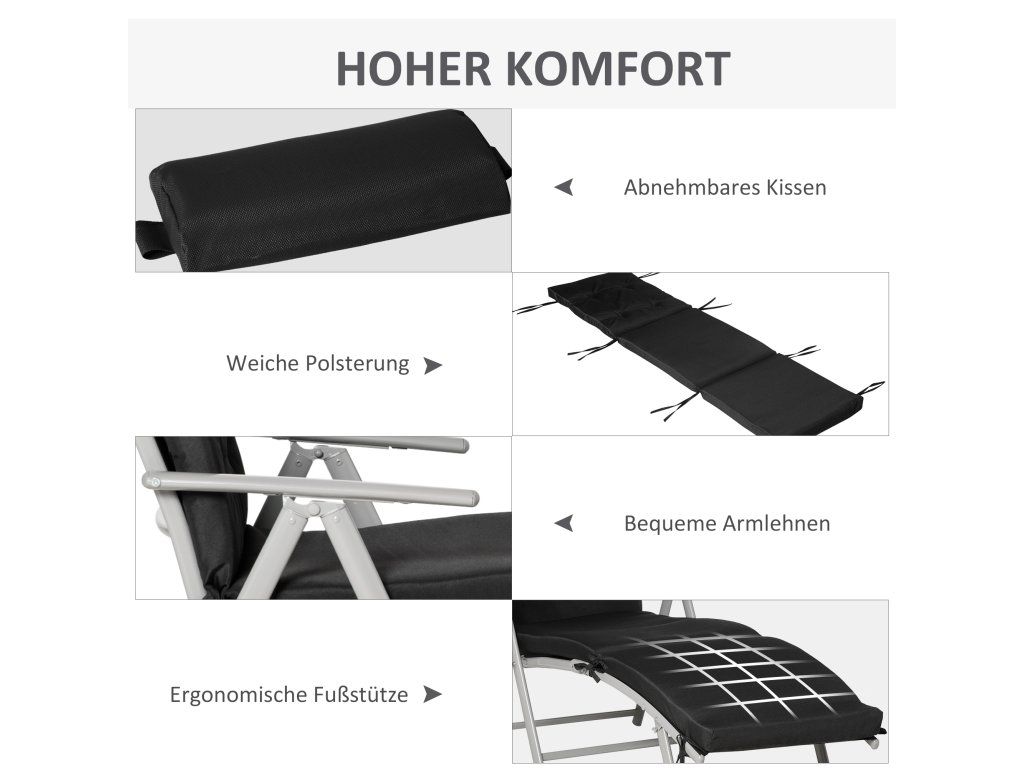 Všestranné použití: Lehátko je odolné vůči povětrnostním vlivům, a proto je ideální pro venkovní použití na zahradě, na balkoně nebo při kempování.