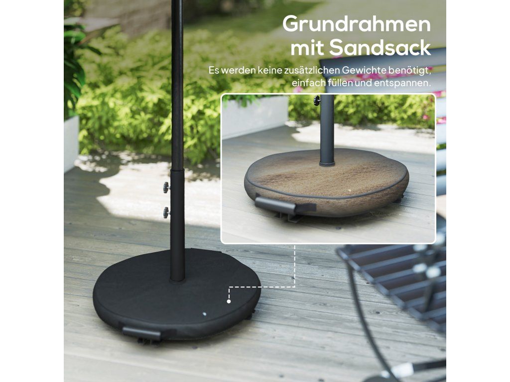 Zahrnuté hmotnosti pytle s pískem: Robustní kovová příčná základna v kombinaci s odolným pytlem s pískem Oxford z 600D zajišťuje celkovou hmotnost 41,7 kg a poskytuje stabilní a bezpečné nastavení slunečníku. Součástí je vše, co potřebujete pro stabilitu.