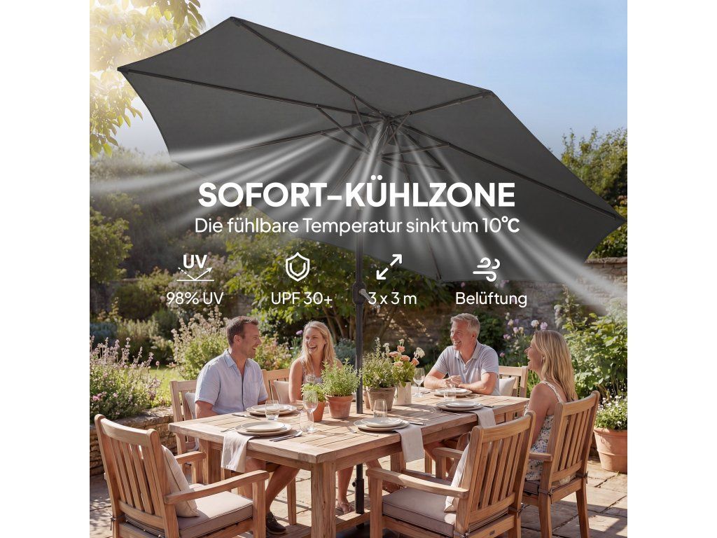 Potah odolný vůči povětrnostním vlivům: Kulatá stříška široká 295 cm je vyrobena z odolného polyesteru 180 g/㎡ s UV ochranou UPF 30+. Trhový deštník je vodoodpudivý a nabízí spolehlivý stín.