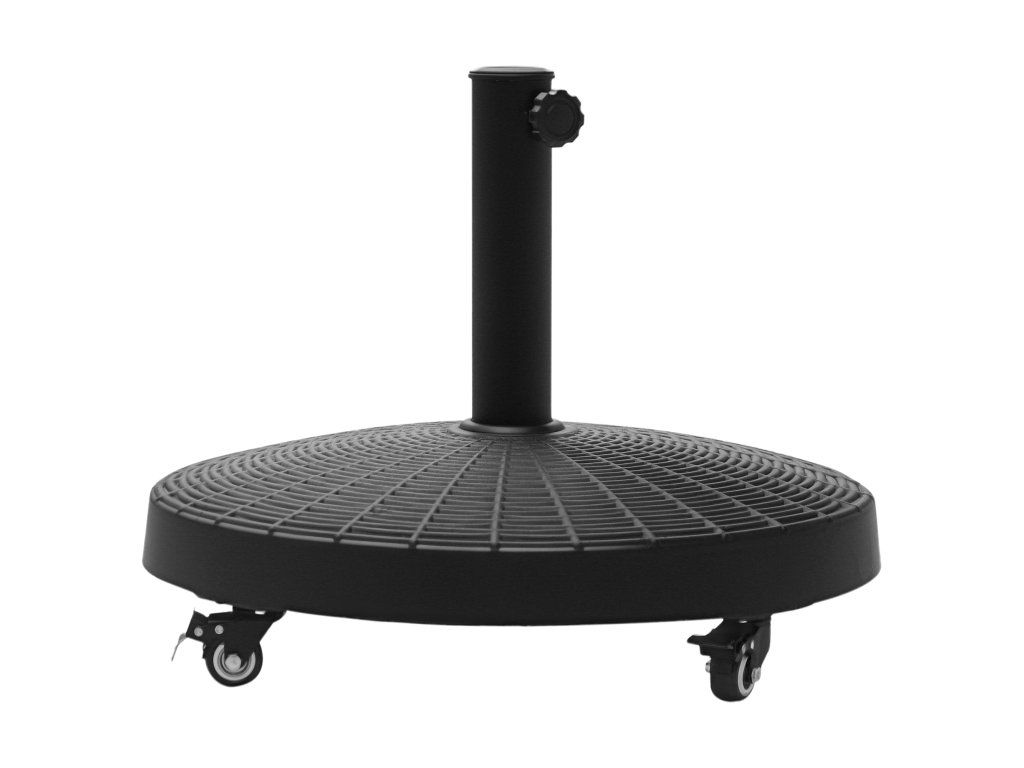 Náš atraktivní podstavec pod slunečník je vhodný pro středně velké slunečníky různých designů. Součástí dodávky jsou dva adaptéry, díky nimž je podstavec všestranný. Pletený design koše v klasické černé barvě dodává tomuto praktickému podstavci pod slunečník i dekorativní prvek. Tyč slunečníku je držena kovovou trubkou pevně ukotvenou v těžké pryskyřičné základně. Podstavec váží 25 kilogramů, je stabilní a díky čtyřem kolečkům se snadno přemisťuje. Ideální pro váš slunečník!
