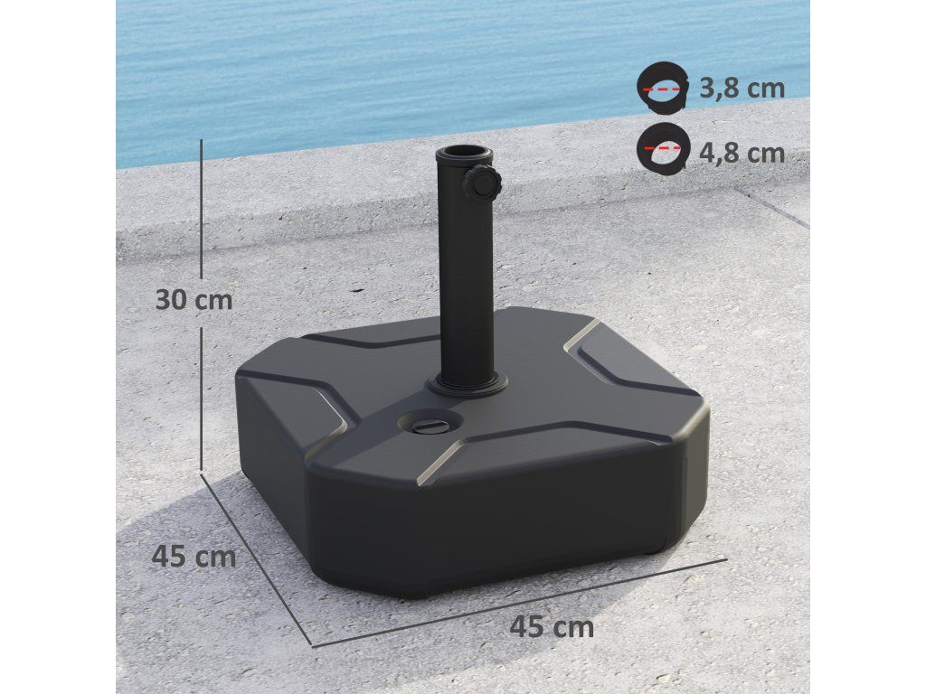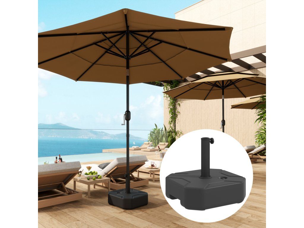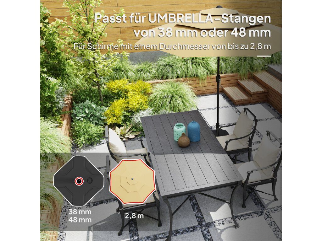 ✔ Základna slunečníku vhodná pro zahradní slunečníky do průměru 2,8 m a tyče 38 nebo 48 mm.