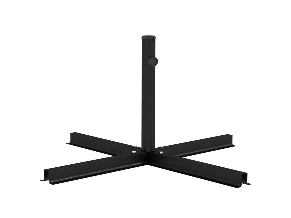 Univerzální křížová základna pro stojan na deštníky: Navržena pro umístění malých konzolových slunečníků i velkých tržních deštníků, které mají průměr tyče 38 mm až 48 mm