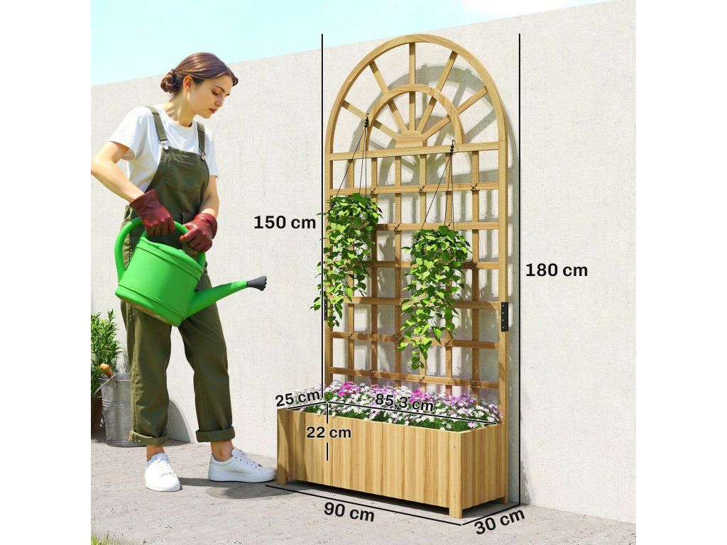 Proměňte svůj balkon, terasu nebo zahradu v kvetoucí oázu s květináčem s mřížkou. Tento elegantní trellis je vyroben z masivního jedlového dřeva odolného vůči povětrnostním vlivům, což zaručuje stabilitu a dlouhou životnost. Ideální pro popínavé rostliny, jako jsou plaménky, růže či mučenky, a díky prostornému květináči poskytuje dostatek místa pro květiny, bylinky i zeleninu. Stylový a praktický doplněk, který vnese do vašeho venkovního prostoru krásu i funkčnost.
