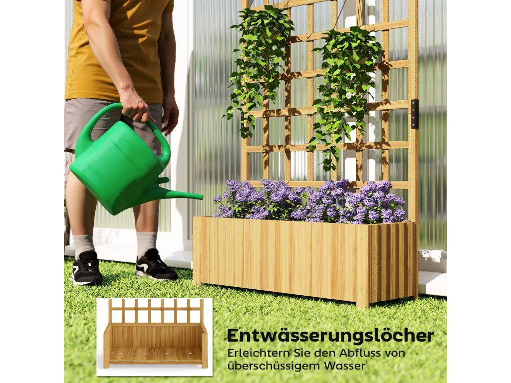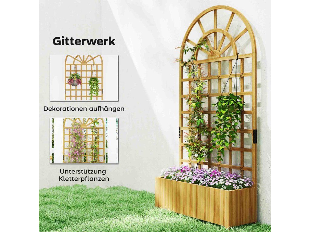 Konstrukce z masivního dřeva: Tento vyvýšený záhon je vyroben z vysoce kvalitního, povětrnostně odolného jedlového dřeva a nabízí výjimečnou stabilitu a odolnost – ideální pro spolehlivou oporu vašich popínavých rostlin.