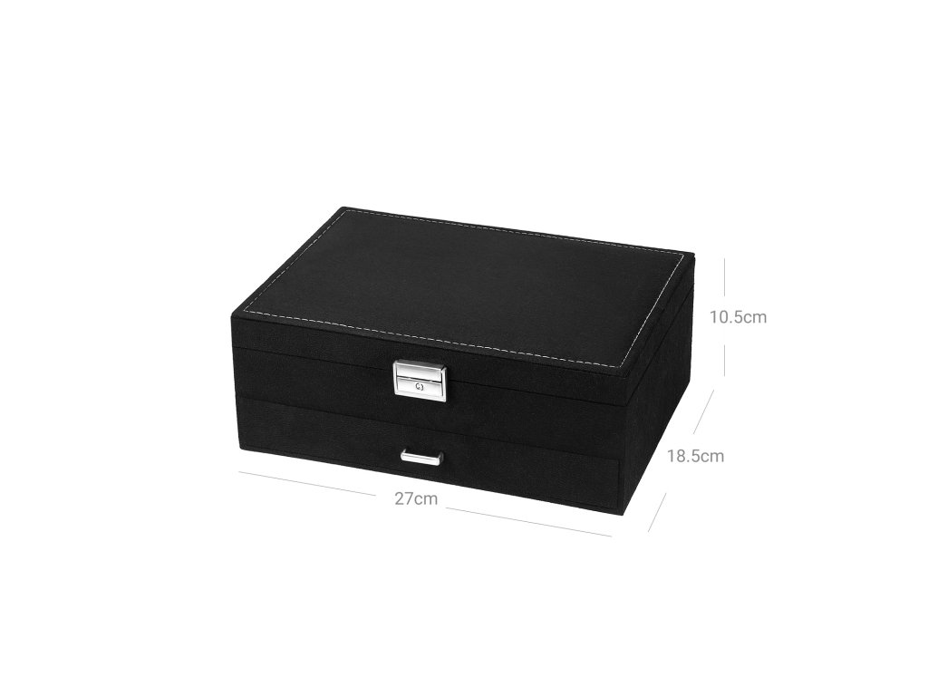 Šperkovnice SONGMICS, šperkovnice, 2 úrovně se zásuvkou a klíčem, na prsteny hodinky náhrdelníky náušnice, černá JBC156B01