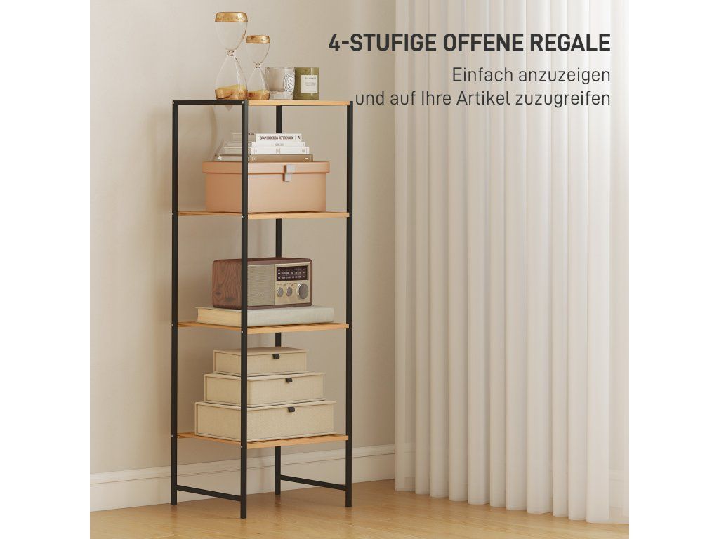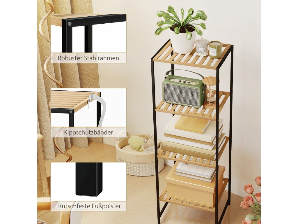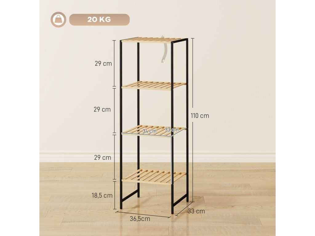 Všestranné úložné prostory: Čtyřpatrová volně stojící police o rozměrech 36,5 cm (D) x 33 cm (Š) x 110 cm (V) nabízí dostatek vertikálního úložného prostoru pro ručníky, knihy nebo rostliny. Je ideální pro malé prostory, uklidí v přeplněných rozích a udrží je organizované.