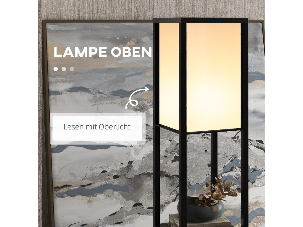 Praktický úložný prostor: Tři otevřené přihrádky ve stojací lampě nabízejí dostatek místa pro knihy, rostliny a dekorace ve stylovém uspořádání