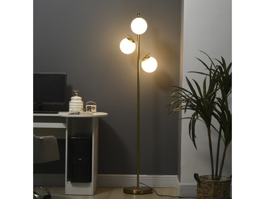 Moderní design: Vysoký stojan na lampu se třemi skleněnými koulemi. Moderní a výrazný vzhled, který vylepší váš domov i kancelář.