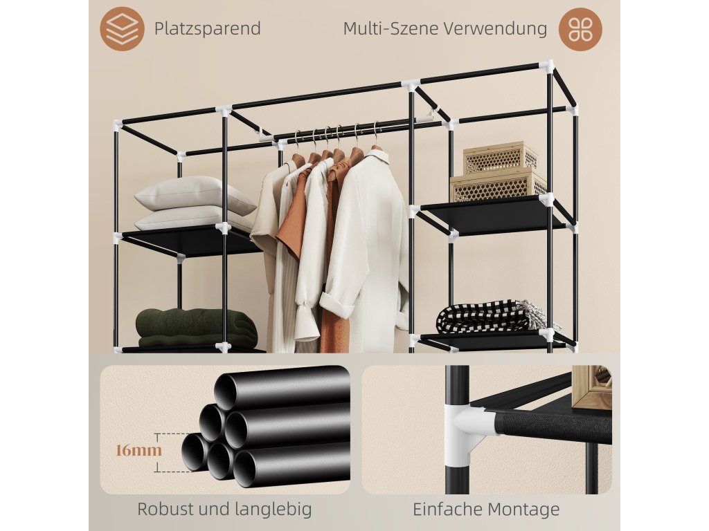 Rozlučte se s nepořádkem: Obsahuje 1 závěsnou tyč na kabáty a šaty. 10 otevřených přihrádek pro skládání oblečení, tašek a ložního prádla.