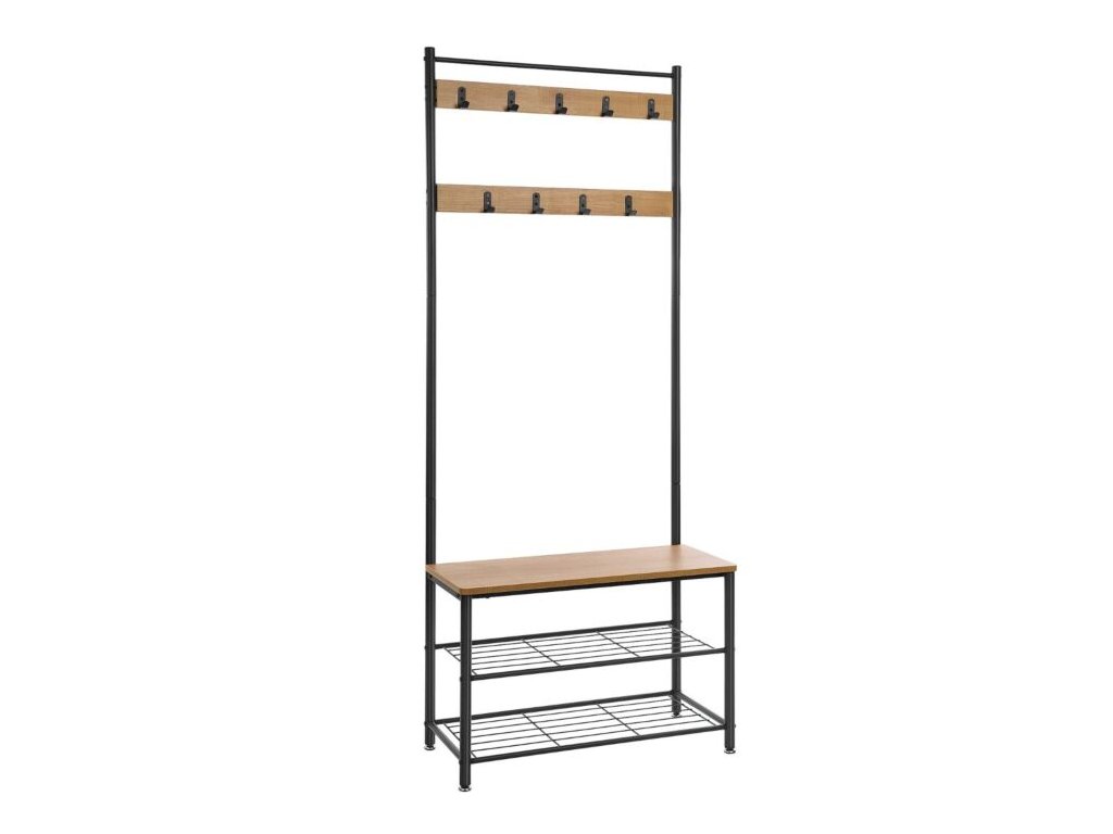 Stojan na kabáty, s 9 háčky, kov / dřevo, černý / hnědý.