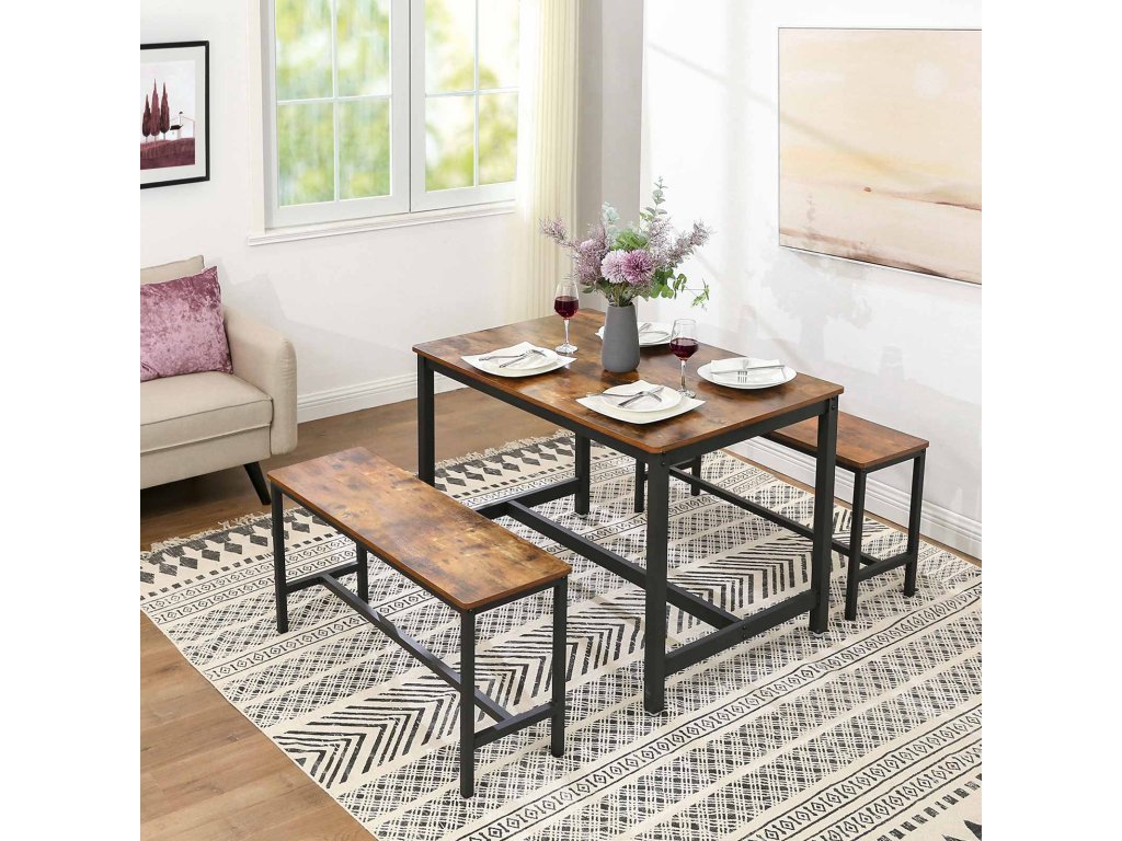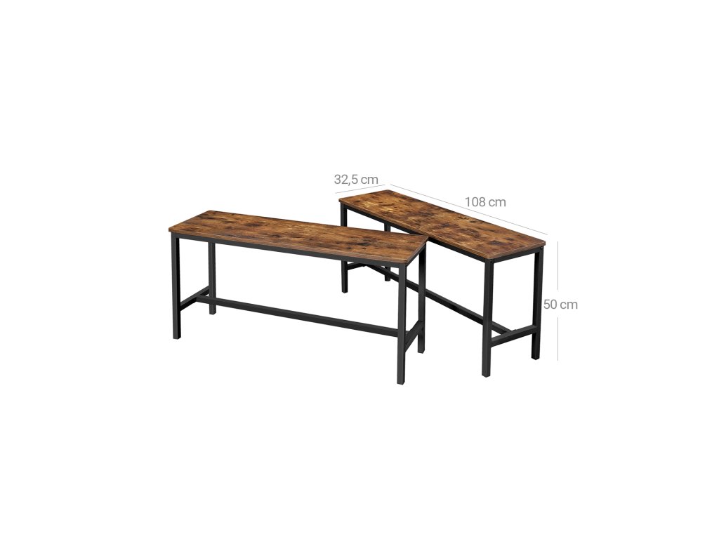 Stolní lavice, sada 2 lavic v industriálním stylu, 108 x 32,5 x 50 cm, odolný kovový rám, do kuchyně, jídelny, obývacího pokoje, rustikální hnědá.