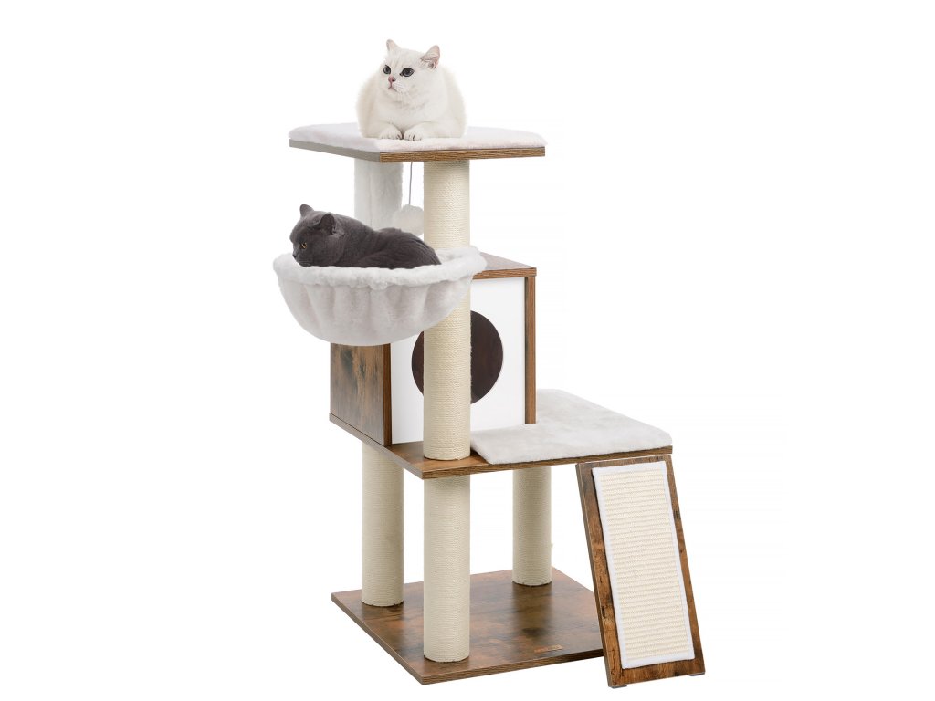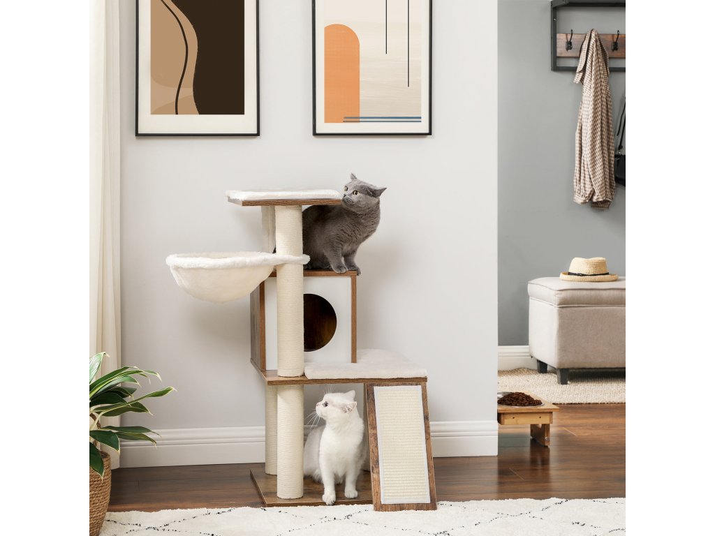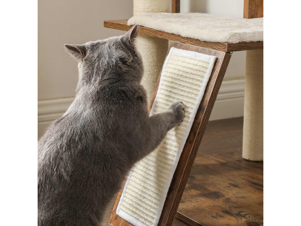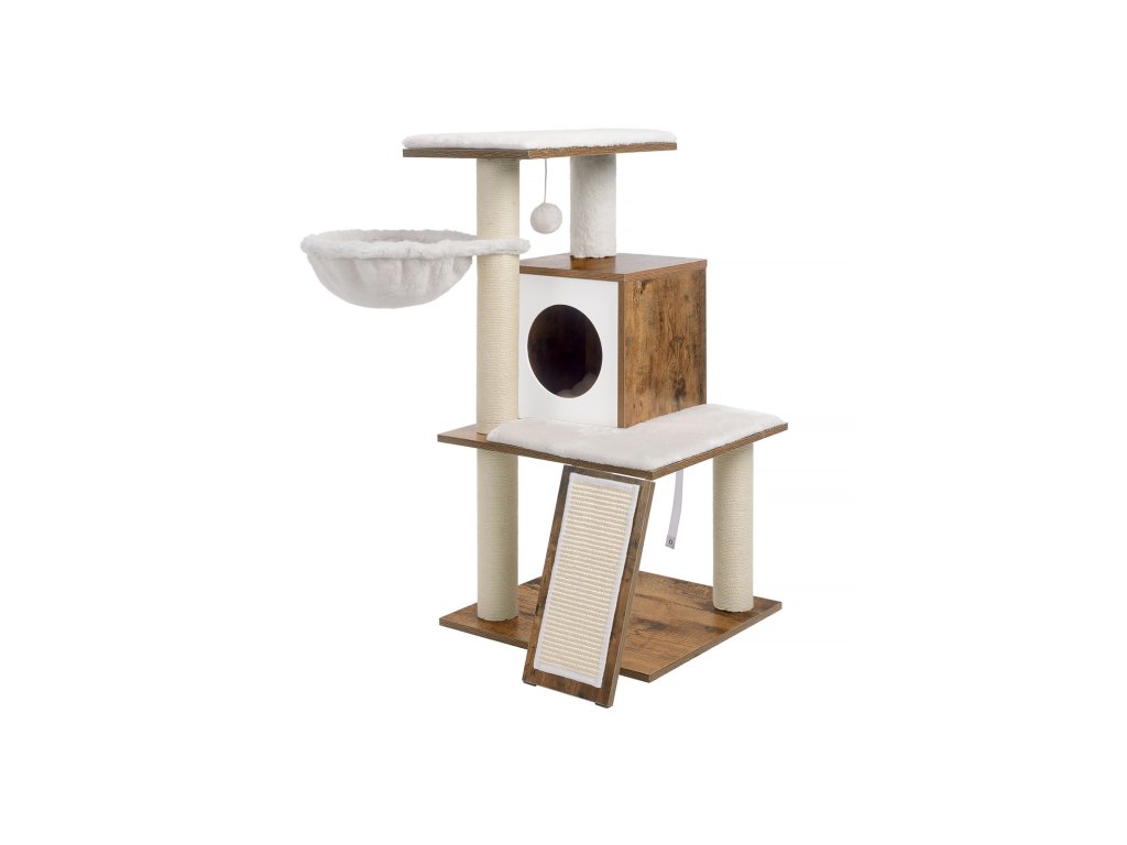 KDE JE JEJÍ OBLÍBENÉ MÍSTO? Vedle okna, v rohu obývacího pokoje. nebo v ložnici? Umístěte tento kočičí strom tam, kde se vaší kočce líbí, a díky nenápadné rustikální hnědé barvě nebude vyčnívat jako pěst na oko.