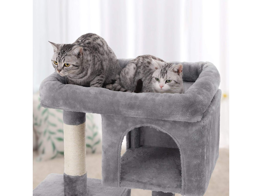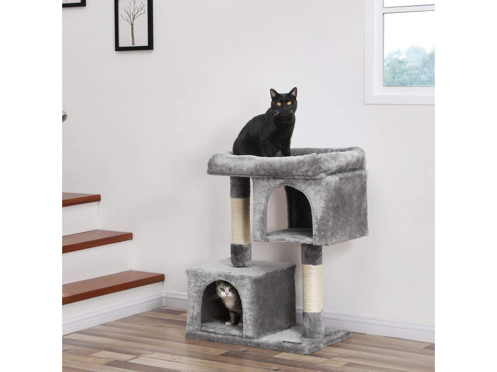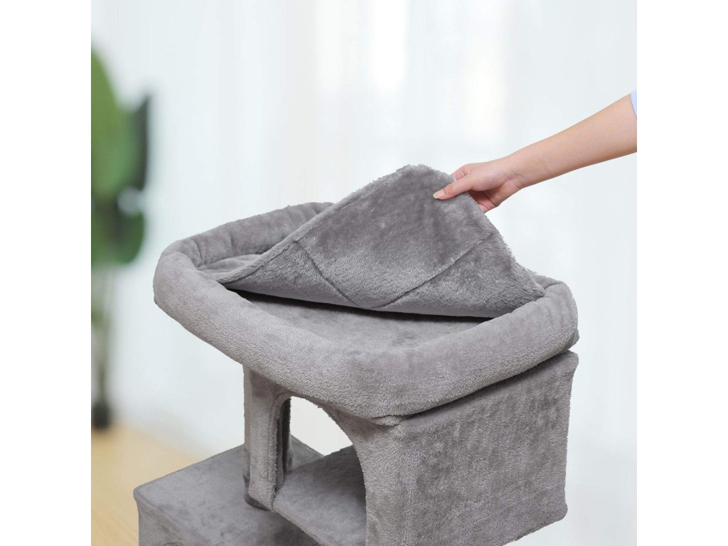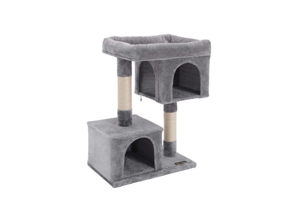 Strom pro kočky, kompaktní domek pro kočky se 2 jeskyněmi, světle šedá.