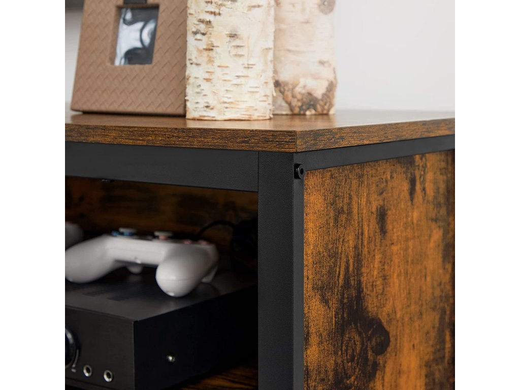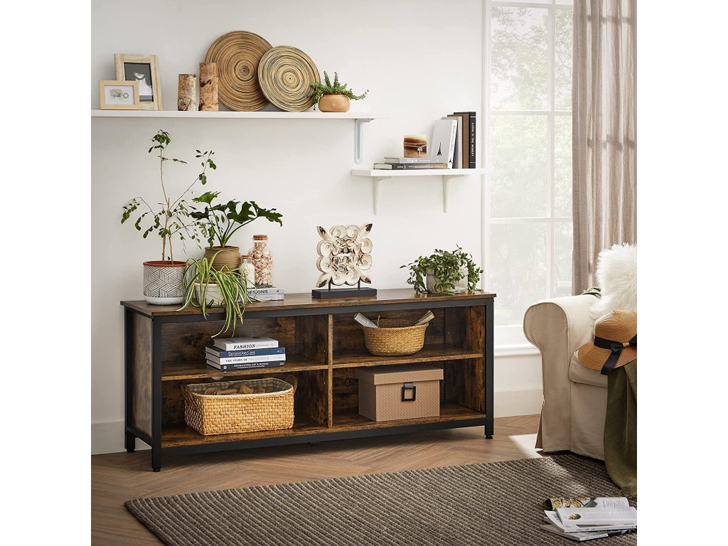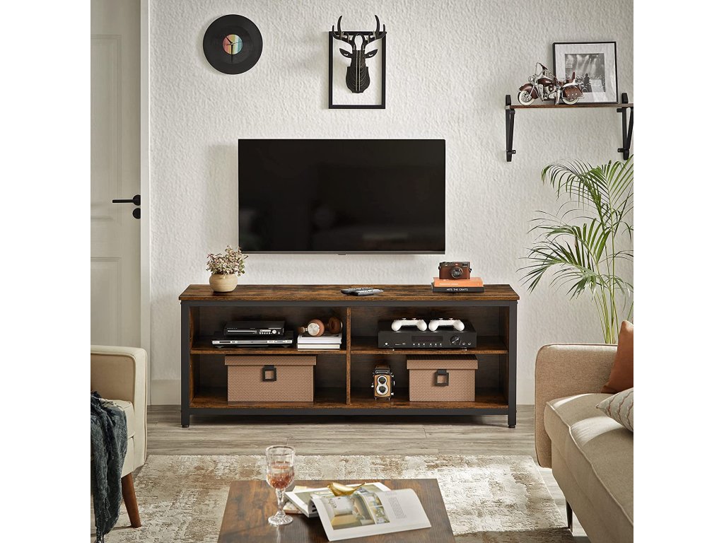 Zušlechtěný průmyslovou jednoduchostí: V tomto případě je tento televizní stojan lepší. Díky čistému, ale elegantnímu profilu, který je doplněn dvoubarevným efektem rustikální hnědé a černé, se jednoduše a uvolněně přibližuje elegantnímu průmyslovému stylu.Posíleno o smíšené materiály: Ocelový rám a dřevotřísková deska tvoří ruku v ruce robustní konstrukci, která vydrží dlouhodobé používání. a povrch, který je pevný, aby unesl až 65 kg, a prostorný, aby se na něj vešly televizory s úhlopříčkou až 65".Seřazeno podle Flexibilní úložiště: Tento televizní stolek je vybaven 2 nastavitelnými policemi a nabízí 4 otevřené přihrádky, do kterých lze umístit předměty různých velikostí a roztřídit je podle typu, od knih a dekorací až po reproduktory a herní konzole.Vylepšená správa kabelů: Jsou nepřehledné kabely v okolí vašeho zábavního centra na očích? Otvory pro kabely na zadní straně zabraňují tomu, aby se kabely vašeho audia, videa a herní komponenty, aby nezabíraly místo a vypadaly čistě a úhledně.Snadná montáž: Tato televizní konzole je dodávána s očíslovanými díly a jasným návodem, takže ji můžete snadno sestavit a začít sledovat svůj oblíbený pořad nebo se usadit na filmový večer.| Kategorie: | TV stolky |