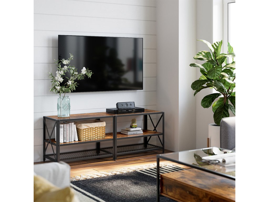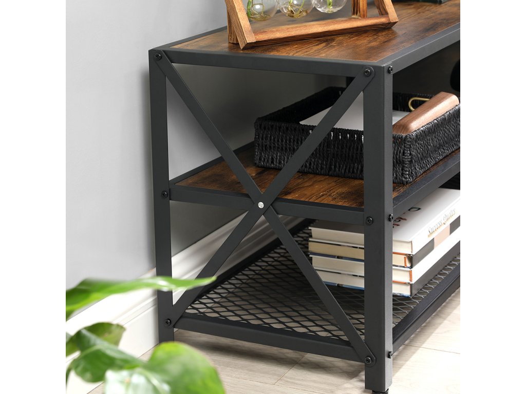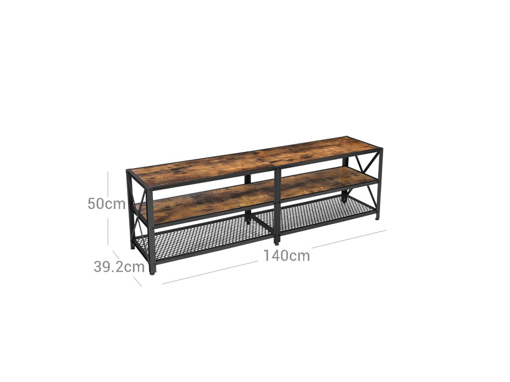 Televizní stolek pro TV s úhlopříčkou do 60 palců, s policemi, ocelový rám, nábytek do obývacího pokoje, ložnice, rustikální hnědá a černá.