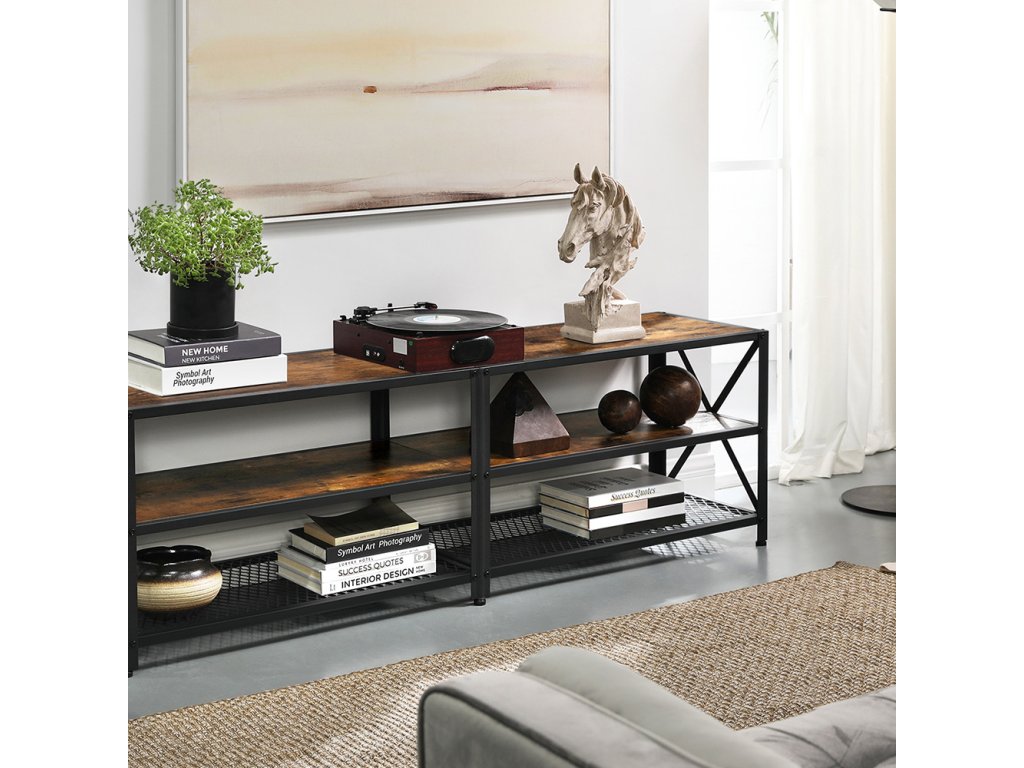 Navrženo pro sílu: Jaká je nosnost 60 kg pro každou ze 2 dřevotřískových polic televizního stolku a 10 kg pro síťovou polici? Je to šestinohý rám ze silné oceli vyztužený pomocí boční design XTelevize, sbírky a hry: Díky 2 dalším policím pod televizorem můžete na tomto televizním stolku uspořádat také své sbírky DVD a herní konzole! A pak stačí jen spustit zábavuTýmová práce: Plánujete se svou drahou polovičkou sledovat derby? Jeden z vás dokáže rychle sestavit televizní stolek díky jasnému návodu. zatímco druhý může strávit těchto 15-20 minut přípravou rychlého a snadného občerstvení.Co získáte: Televizní stolek o rozměrech 140 x 39 x 52 cm, který dokáže zvednout televizi s úhlopříčkou 60 palců nebo menší. a způsob, jak si zařídit obývací pokoj v úžasném industriálním stylu z kolekce VASAGLE BRYCE.| Kategorie: | TV stolky |