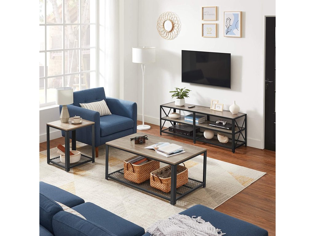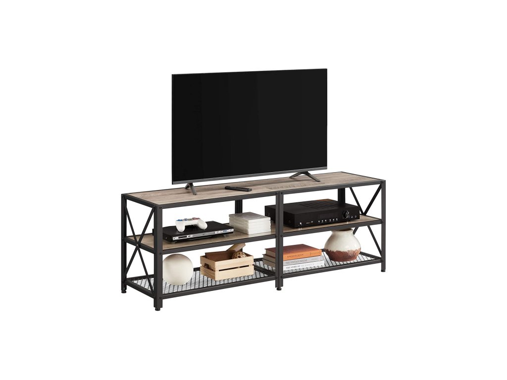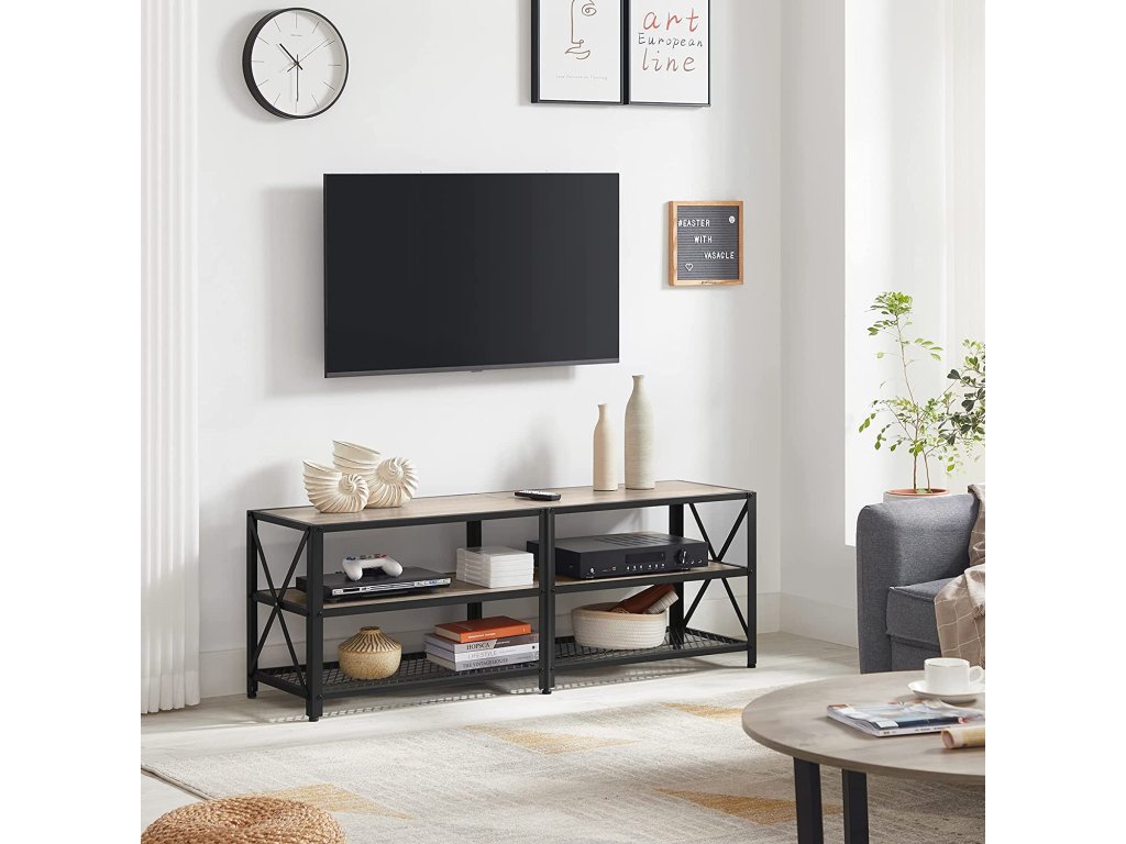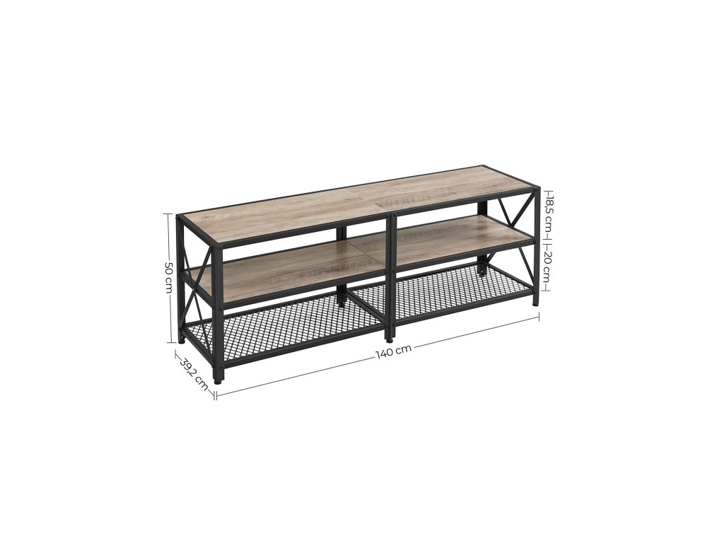 Zvedněte televizor stylově: Pozvěte své přátele na líné nedělní odpoledne a sledujte svůj oblíbený film. Tento televizní stolek v industriálním stylu s béžovými policemi a matným černým rámem zapůsobí na vaše hosty a ukáže vaši osobnost.Nejen pro televizi: Díky silnému a stabilnímu ocelovému rámu, 2 kvalitním dřevotřískovým policím, z nichž každá unese až 132,3 kg, a síťové polici, která unese až 22 kg, můžete televizor umístit na své místo. videohry a všechny vaše sbírky DVD zde.Televize, sbírky a hry: Díky 2 dalším policím pod televizorem můžete na tomto televizním stolku uspořádat také své sbírky DVD a herní konzole! A pak stačí jen spustit zábavuSnadná montáž: Vaše oblíbená série právě začíná, ale váš televizor stále leží na podlaze? Nepropadejte panice, tuto skříňku pod televizor sestavíte rychle díky očíslovaným jednotlivým dílům; teď už nezmeškáte ani vteřinu své show;Co získáte: Televizní stolek o rozměrech 55,1" x 15,4" x 20,5", který dokáže zvednout televizor s úhlopříčkou 60 palců nebo menší. a způsob, jak si zařídit obývací pokoj v úžasném industriálním stylu z kolekce VASAGLE BRYCE.| Kategorie: | TV stolky |