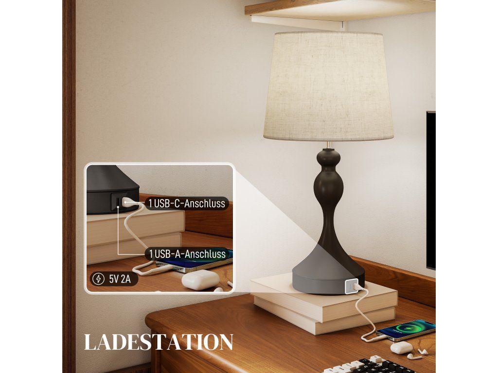Integrované nabíjení přes USB: Nabíjejte své mobilní telefony, tablety nebo elektronické čtečky přímo přes integrované porty USB-A a USB-C v základně stolní lampy. Pro udržení pořádku v nočním stolku a vždy připravené k použití nejsou potřeba žádné další adaptéry.