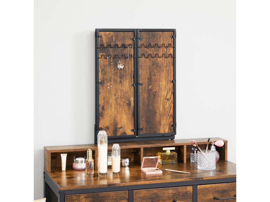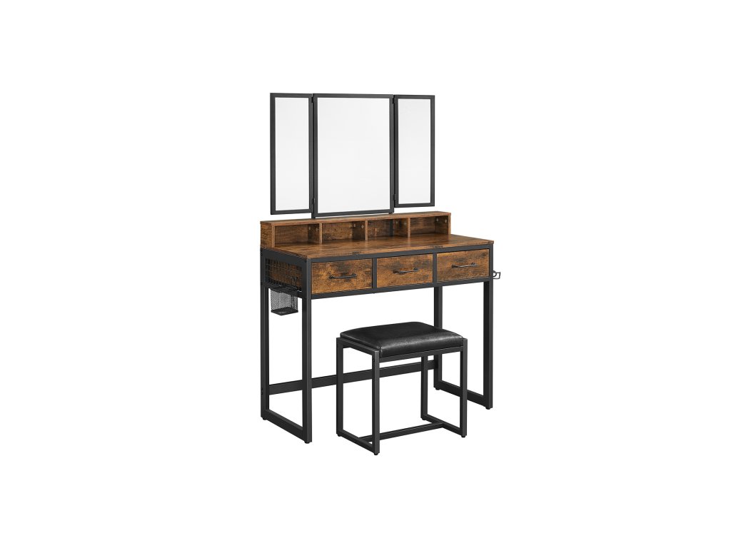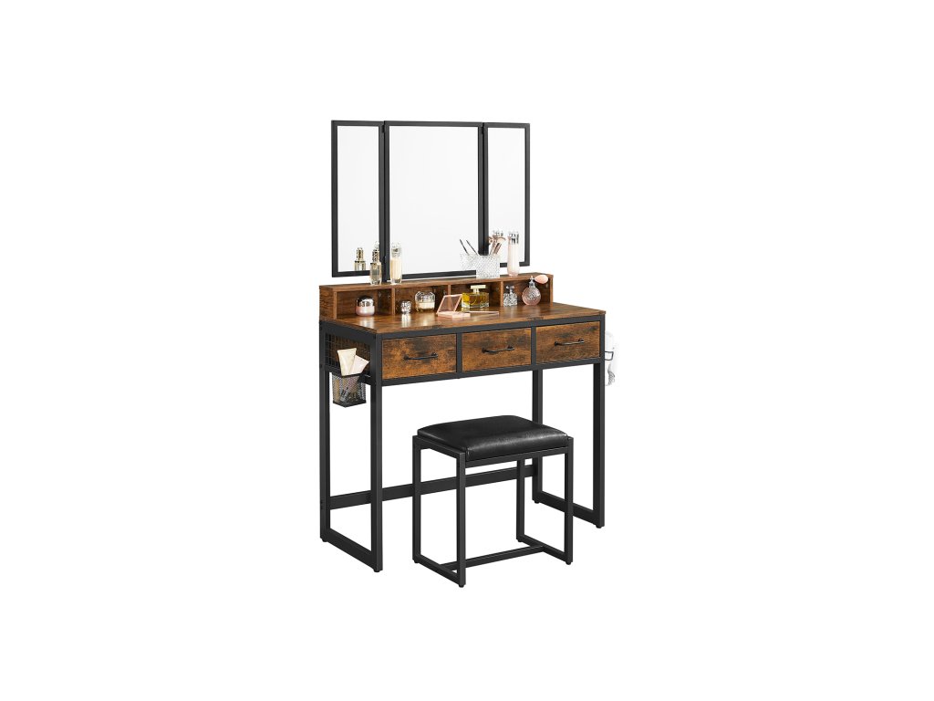 Povrch stolu bez chaosu: Máte na toaletním stolku rozházené paletky očních stínů a rtěnky? Nebojte se! Tři prostorné zásuvky vám pomohou získat opět přehlednou plochu.Ještě více? Samozřejmě! Jak může půvabná dívka žít bez pečujících přípravků a nástrojů na úpravu vlasů? Proto je tento toaletní stolek vybaven 4 policemi pod zrcadlem. a také úložný box (8 x 8 x 10 cm) a držák na fén na boku.