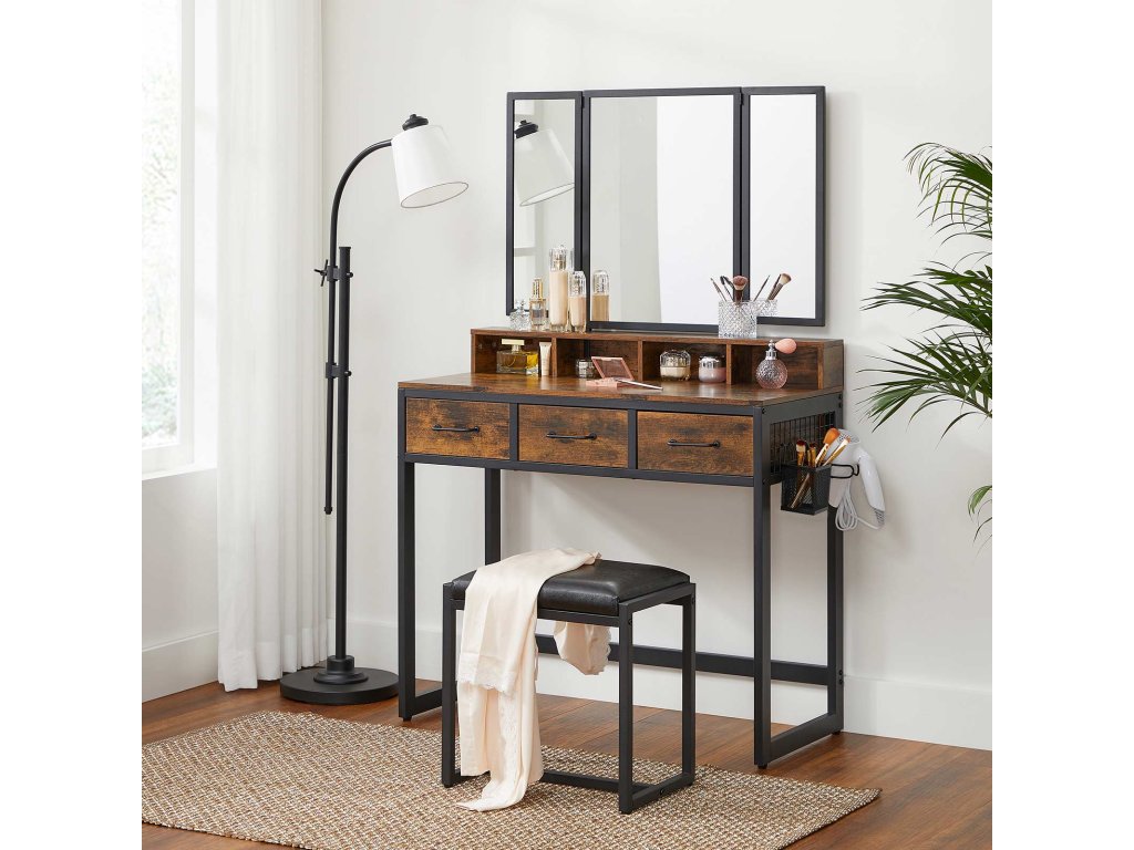Silný tým: kombinace robustního ocelového rámu a vysoce kvalitní dřevotřískové desky zajišťuje vysokou stabilitu výrobků pro péči o pleť. make-up a parfémy - nebo dokonce květiny, které vnesou do vašeho pokoje svěžest.Co získáte: působivý toaletní stolek s trojdílným skládacím zrcadlem, polstrovanou stoličkou pro větší pohodlí. přehledný návod pro snadnou montáž a možnost zefektivnění vašeho kosmetického salonu.| Kategorie: | Toaletní stolky |