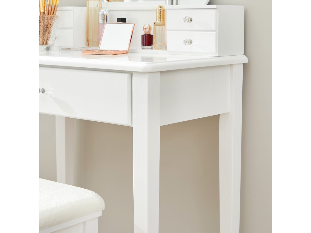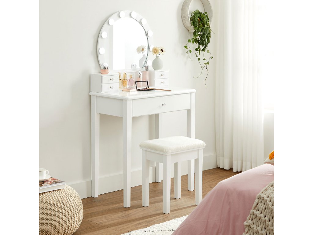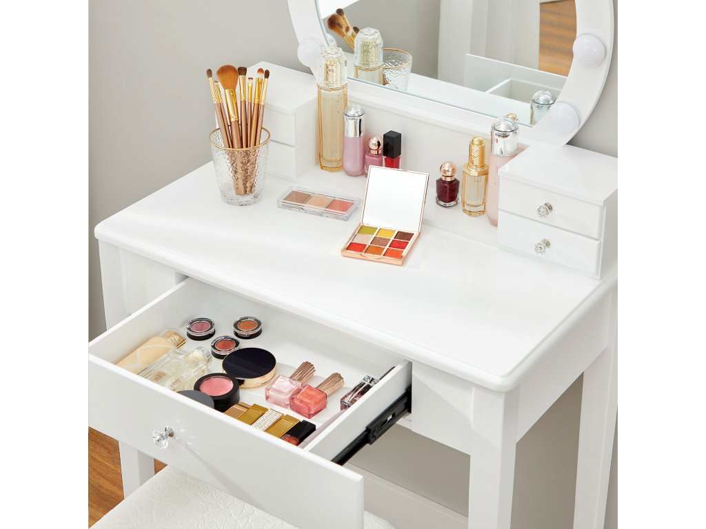 Milovníci kosmetiky jsou spokojeni. Jste nadšenci do kosmetických výrobků? Gratulujeme, našli jste skvělou stylingovou stanici. Na tomto toaletním stolku s 5 zásuvkami a velkou deskou je místo pro všechny vaše poklady.