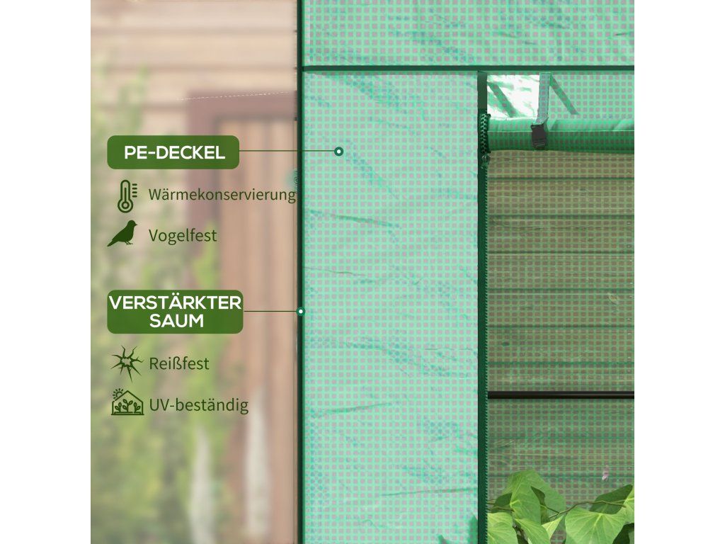 Zpevněný plastový kryt: Středová mřížka činí kryt obzvláště odolným proti roztržení. Tento kompaktní skleník na rajčata spolehlivě chrání před intenzivním sluncem, větrem a slabým deštěm.