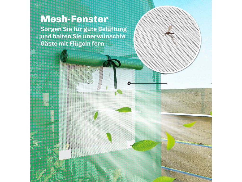 Robustní konstrukce: Díky lakovanému ocelovému rámu je skleník odolný, odolný proti korozi a vhodný pro každodenní použití. Kotvící lana a zemní kolíky poskytují dodatečnou stabilitu.