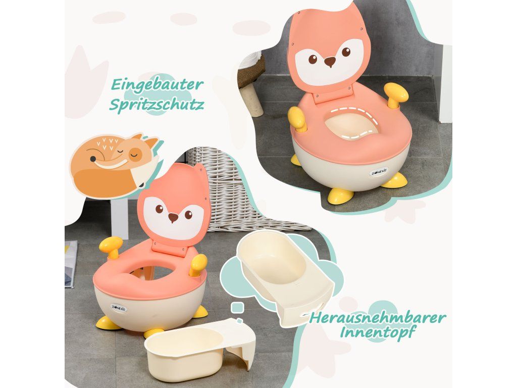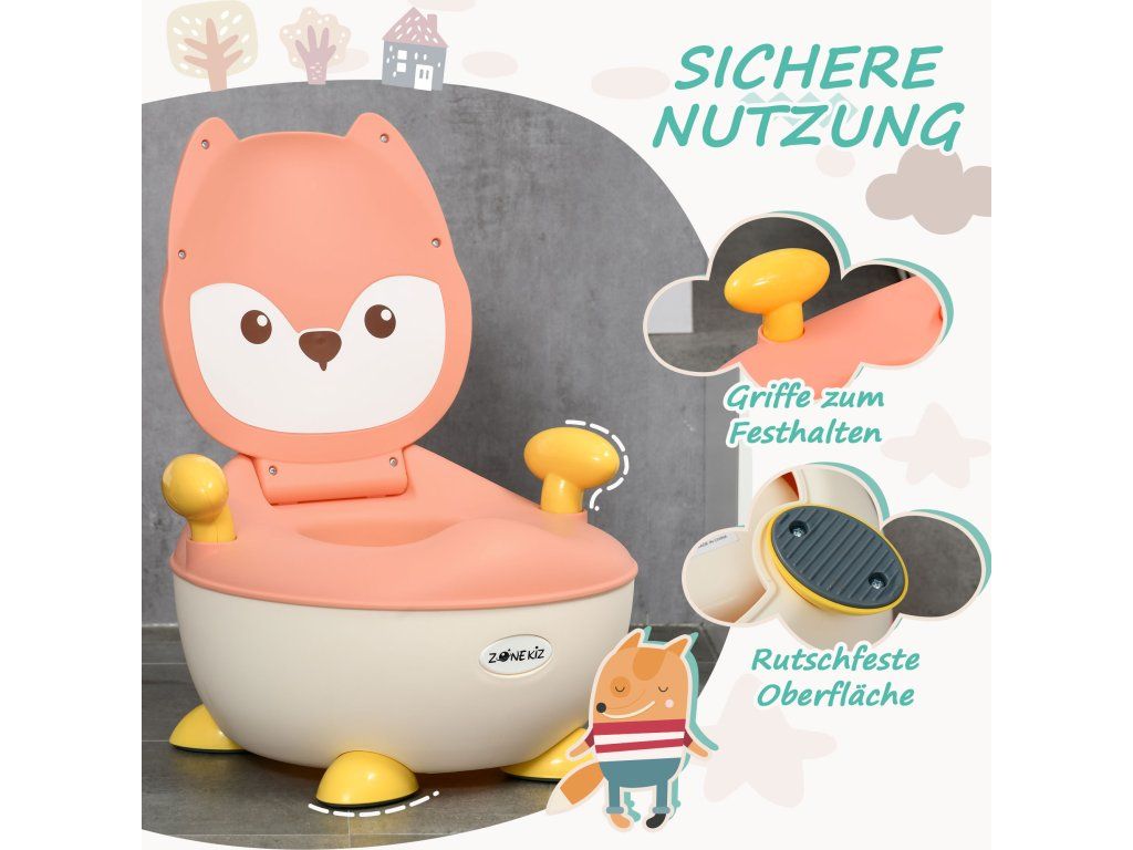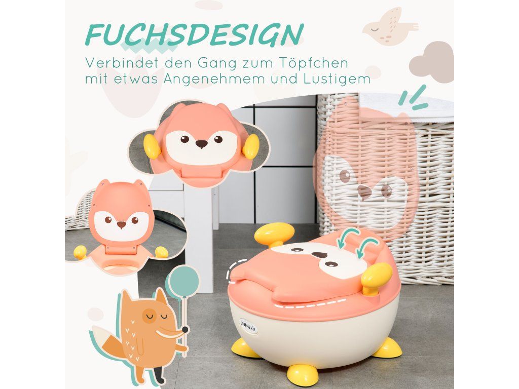 Rozkošný design: Naše dětská toaleta má tvar okouzlující růžové lišky, takže nácvik na nočník je zábavný a vhodný pro děti. Vaše dítě bude toaletu používat s radostí a sebejistě – zcela samo!