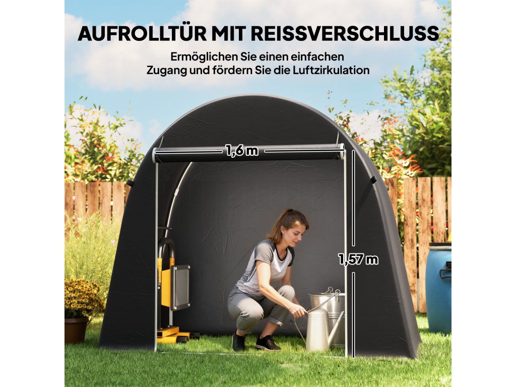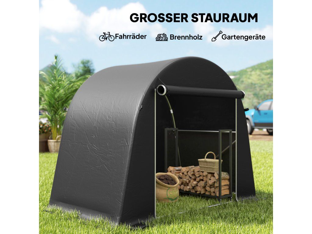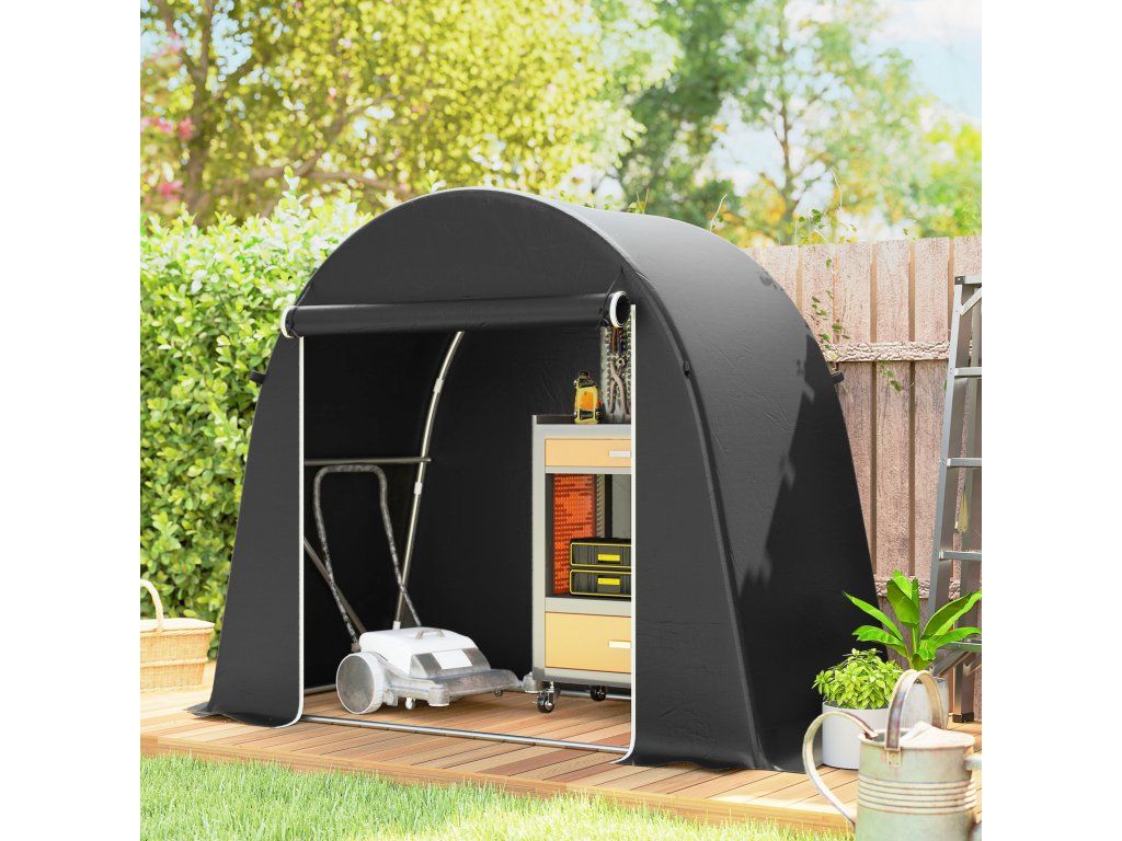 Přenosný a všestranný zahradní domek slouží nejen jako přístřešek na kola, ale také k uložení zahradního nářadí, palivového dřeva a venkovního vybavení. Díky bezešvé, vodotěsné skořepině a robustnímu pozinkovanému kovovému rámu zůstanou vaše věci vždy suché a chráněné před nepřízní počasí. Ideální pro celoroční a spolehlivé uložení vašeho zahradního vybavení nebo pro zimní přípravu.