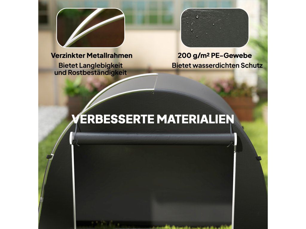 ✔ Vylepšený potah garáže na kola s gramáží 200 g/m² nabízí zvýšenou ochranu proti vodě.