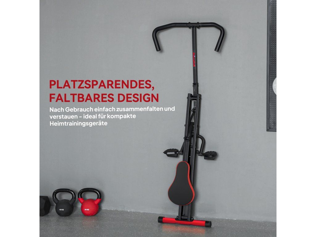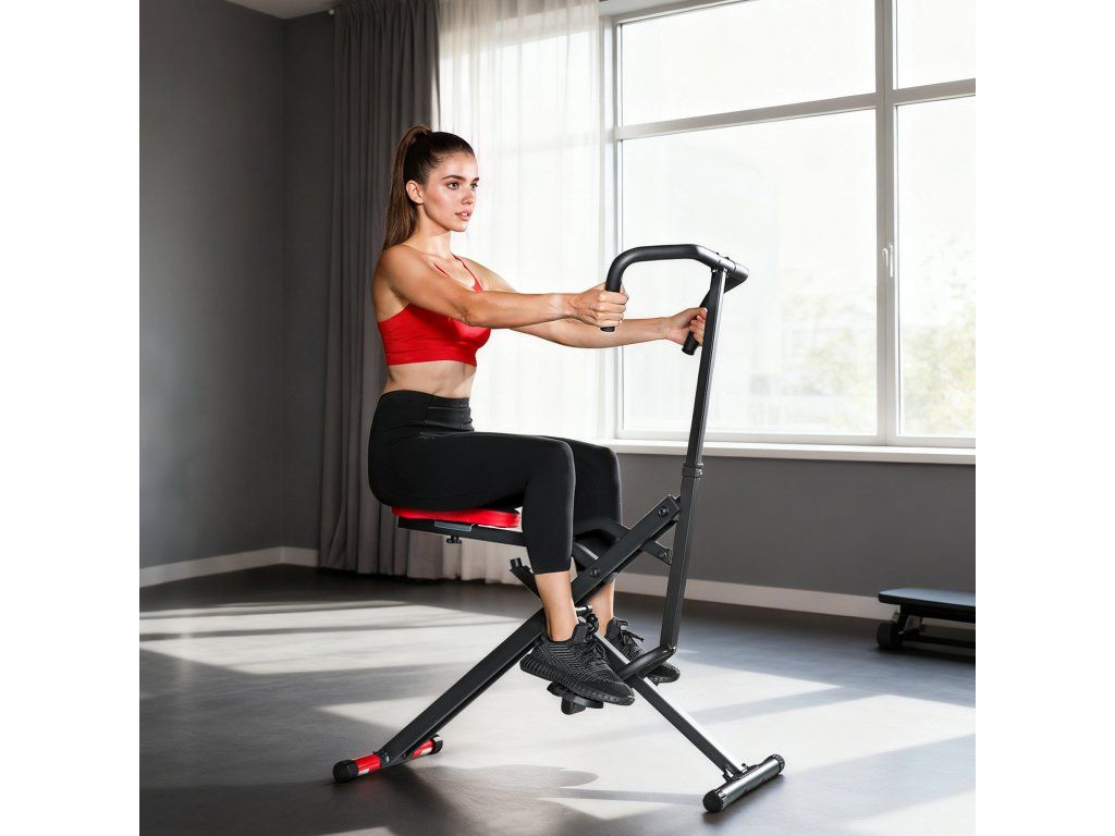 Celotělový fitness stroj Total Crunch - váš kompletní trenér břicha a celého těla. Je navržen tak, aby tónoval paže, nohy, břicho a hýždě jediným pohybem a umožňuje vám rychle spalovat kalorie bez složitých cvičení. Nastavitelné sedadlo se přizpůsobí každému uživateli, zatímco pevný kovový rám a protiskluzové pedály zajistí stabilní a bezpečné cvičení. Snadno skládací, ideální pro stísněné prostory a každodenní domácí cvičení.