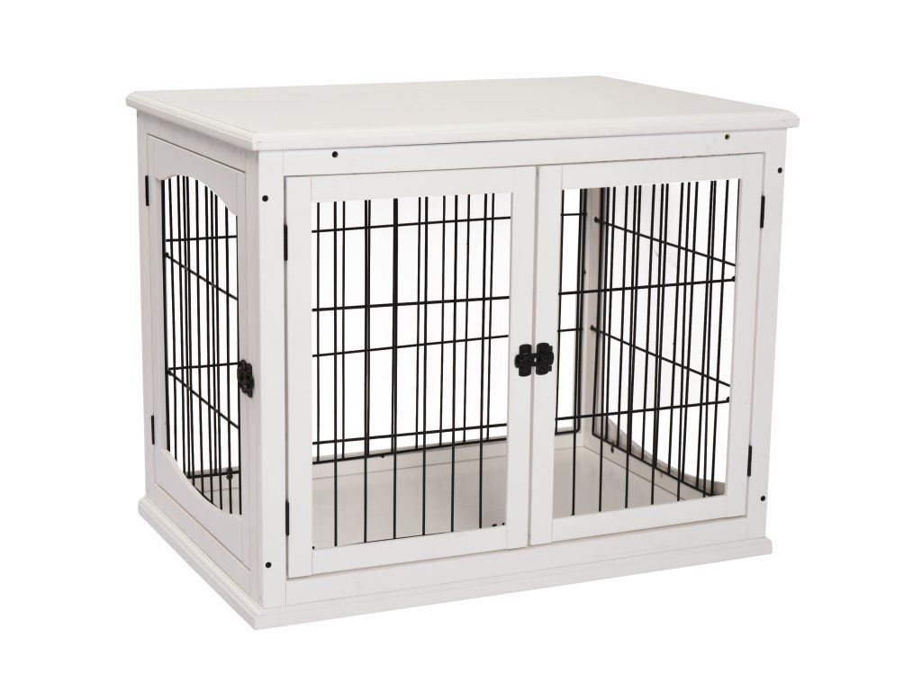 Tato přepravní krabice vám umožní bezpečně vzít vašeho psa k veterináři nebo na výlety. Robustní konstrukce z MDF dřeva a železných tyčí zajišťuje stabilitu a bezpečnou přepravu. Kovové tyče poskytují dobré větrání a umožňují vašemu psovi volný výhled. Tato přepravní krabice je ideální pro malé až středně velké psy.
