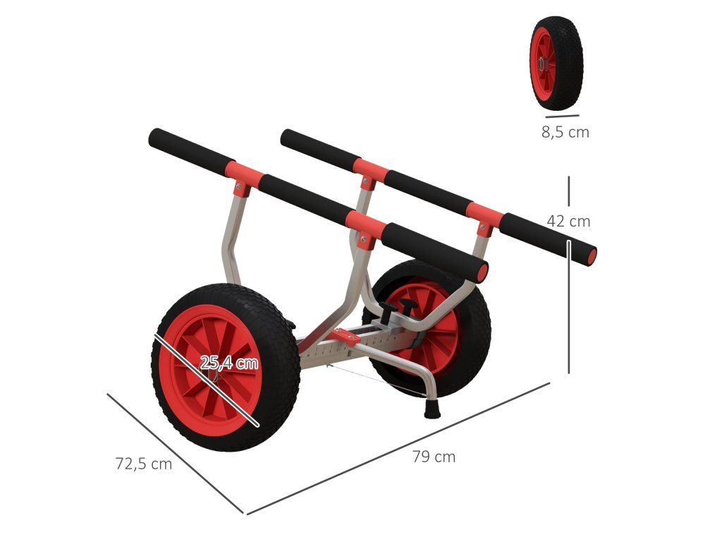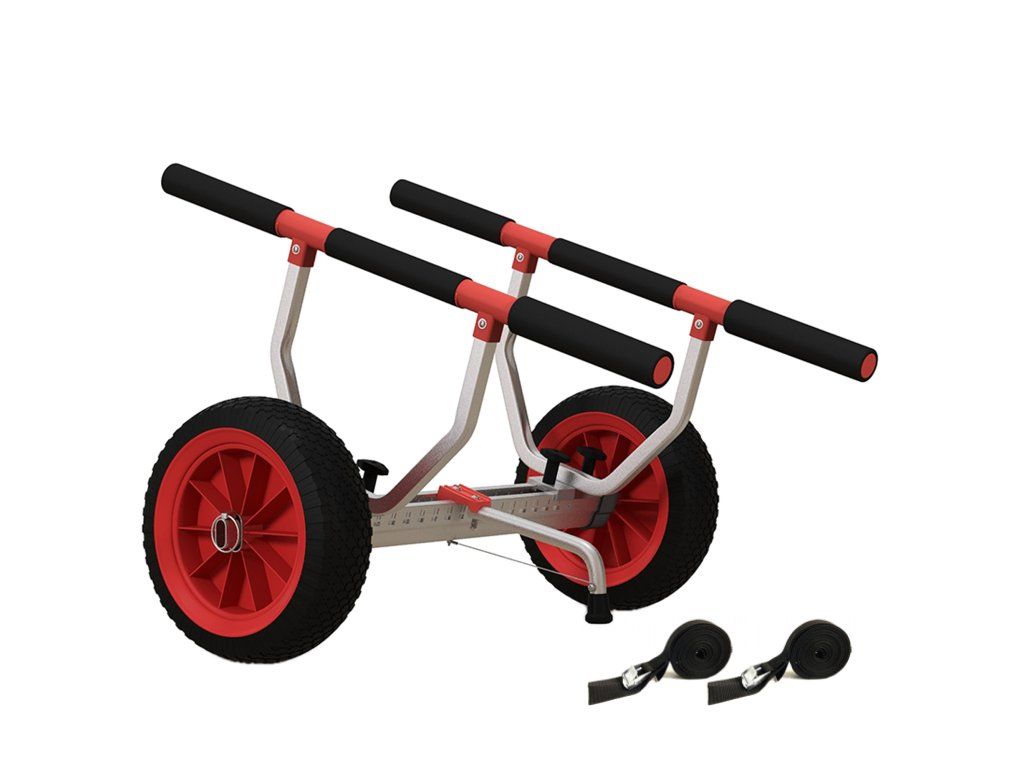 Usnadněte si život s kajakovým vozíkem. Hliníkový rám tohoto kajakového vozíku se dvěma velkými koly a vysoce kvalitní, ale lehkou konstrukcí umožňuje snadný pohyb v jakémkoli terénu, od písečných pláží až po travnaté břehy. Díky nastavitelné šířce není přeprava lodí různých velikostí žádný problém. Vydejte se na další pádlovací dobrodružství!