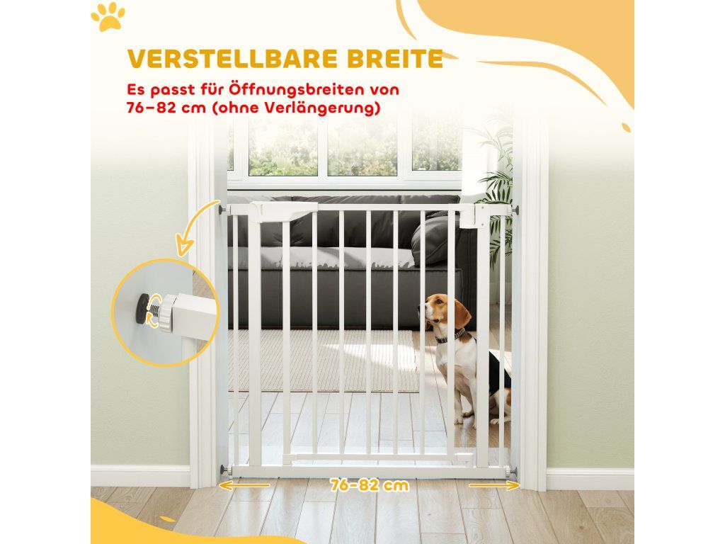 Bezpečnostní branka pro miminka a domácí mazlíčky: Tato bezpečnostní branka, testovaná dle ASTM, SOR2016-179, EN1930:2011 a EN71-3, pasuje do otvorů o průměru 76–82 cm a výšce 76 cm. Udrží děti ve věku 6 až 24 měsíců a malé až středně velké psy bezpečně uvnitř. Ideální pro schody, dveře a chodby.