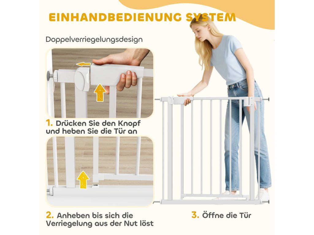 ✔ Dvojitý zamykací mechanismus branky chrání batolata a zvědavá domácí mazlíčky.