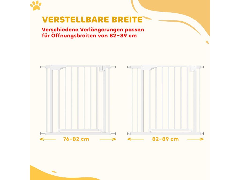Bezpečnostní branka pro miminka a domácí mazlíčky: Tato bezpečnostní branka, testovaná dle ASTM, SOR2016-179, EN1930:2011 a EN71-3, pasuje do otvorů o průměru 76–89 cm a výšce 76 cm. Udrží děti ve věku 6 až 24 měsíců a malé až středně velké psy bezpečně uvnitř. Ideální pro schody, dveře a chodby.