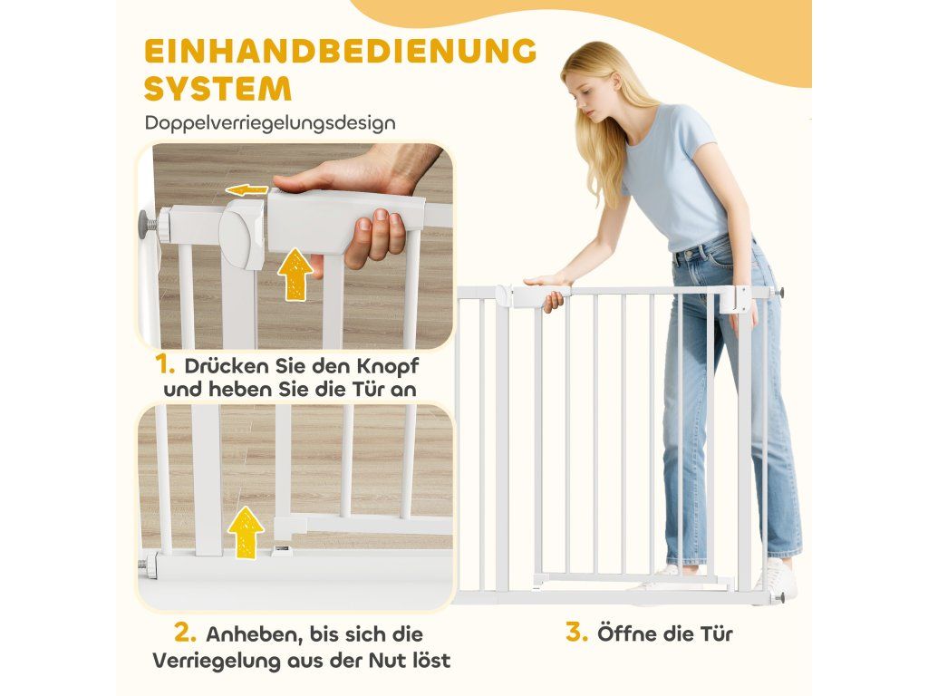✔ Dvojitý zamykací mechanismus branky chrání batolata a zvědavá domácí mazlíčky.