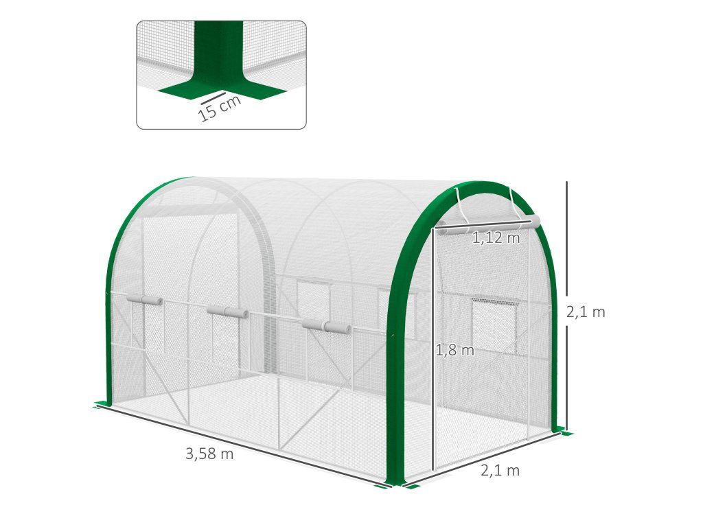 Rolovací dveře a síťovaná okna: Velké rolovací dveře na zip umožňují snadný přístup do vašeho tunelového skleníku a síťovaná okna zabraňují vniknutí hmyzu. Vícenásobné otvory umožňují cirkulaci vzduchu, takže můžete vždy kontrolovat teplotu a vlhkost.