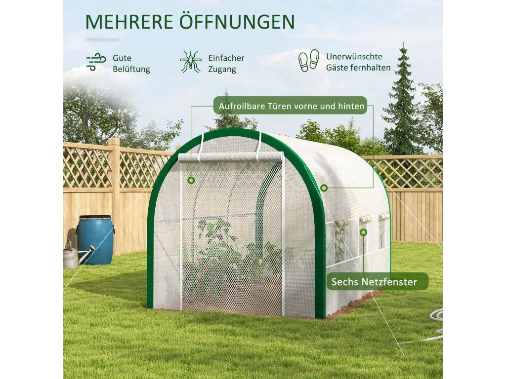 Sklízejte bohatou úrodu bez ohledu na počasí díky tomuto tunelovému skleníku. Prostorný interiér nabízí dostatek prostoru pro vaše rostliny a otevřený design umožňuje přizpůsobení vašim potřebám. Díky rolovacím dveřím na zip a šesti síťovaným oknům poskytuje snadný přístup a optimální větrání pro vaše rostliny. Odolný pozinkovaný ocelový rám zajišťuje maximální stabilitu.